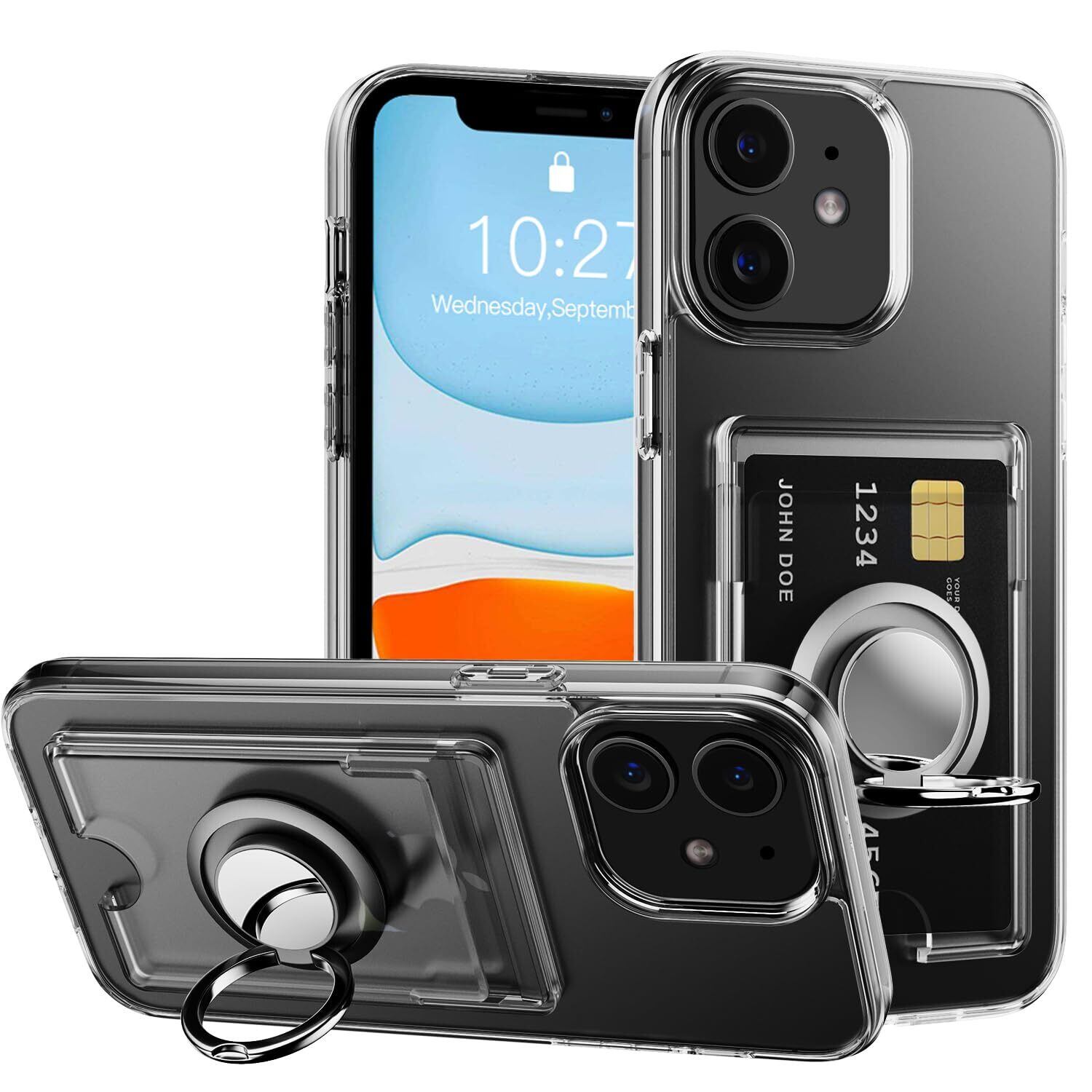 iPhone 11 ケース 透明 カード収納 リング付き 耐衝撃保護カバー アイフォン11 スマホケース クリア シリコン スタンド機能 耐久 滑り止め (クリア)