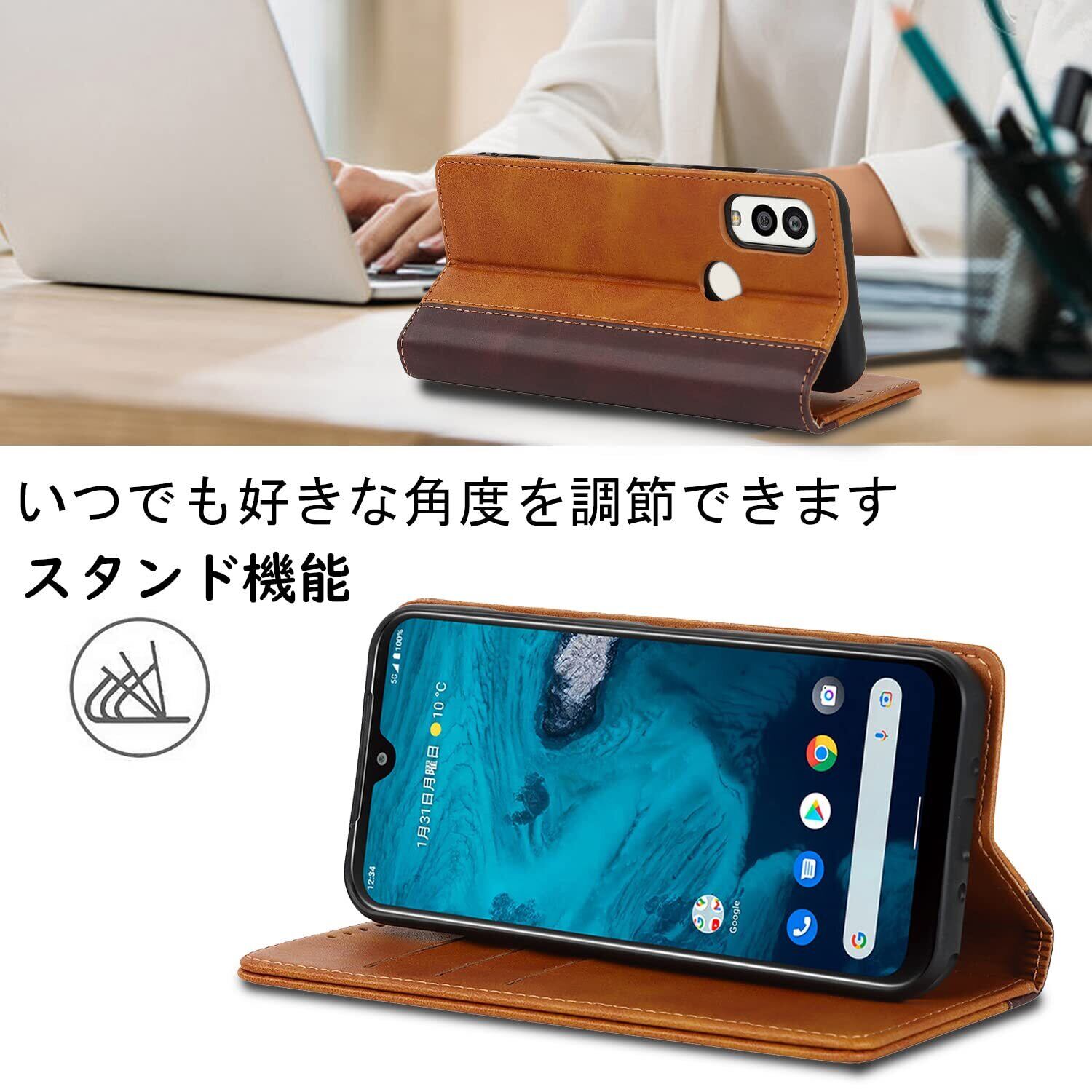 【収納機能】Android One S9ケース内側には三つのカード入れとフリーポケットがつき、カード類や紙幣、名刺などが収納できます。カードスロットに2枚のカードを入れると、内蔵マグネットの機能を最大限に発揮し、カードが消磁されるのを防ぐことができます。横置きスタンド機能が付き、横向いて斜めに立てて、自由に角度を調整して、お好みの角度で動画鑑賞や読書などを楽しめます。長時間での新幹線、飛行機の中での暇つぶしに最適です。