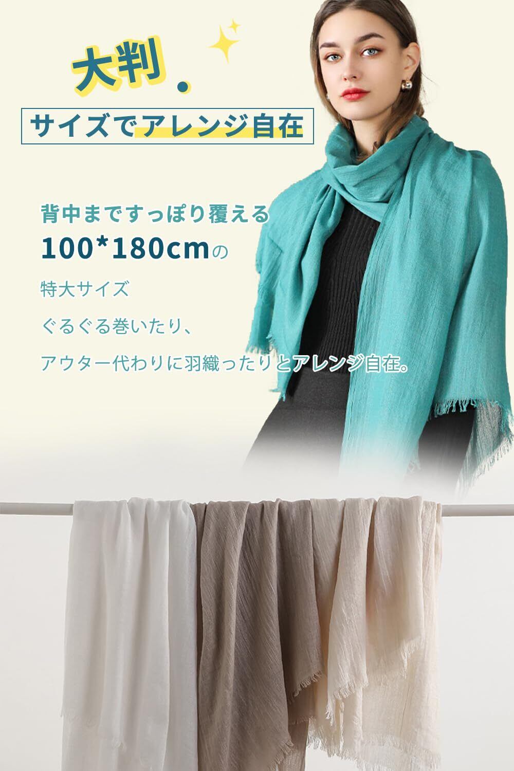[Ttoitv] ガーゼ スカーフ 大判 マフラー 夏 コットン 綿【冷感・薄手・無地・ふんわり】 紫外線対策 UVカット 日焼け防止 冷房対策 軽量 おしゃれ ショール 洗濯可 春 夏 プレゼント 結婚式