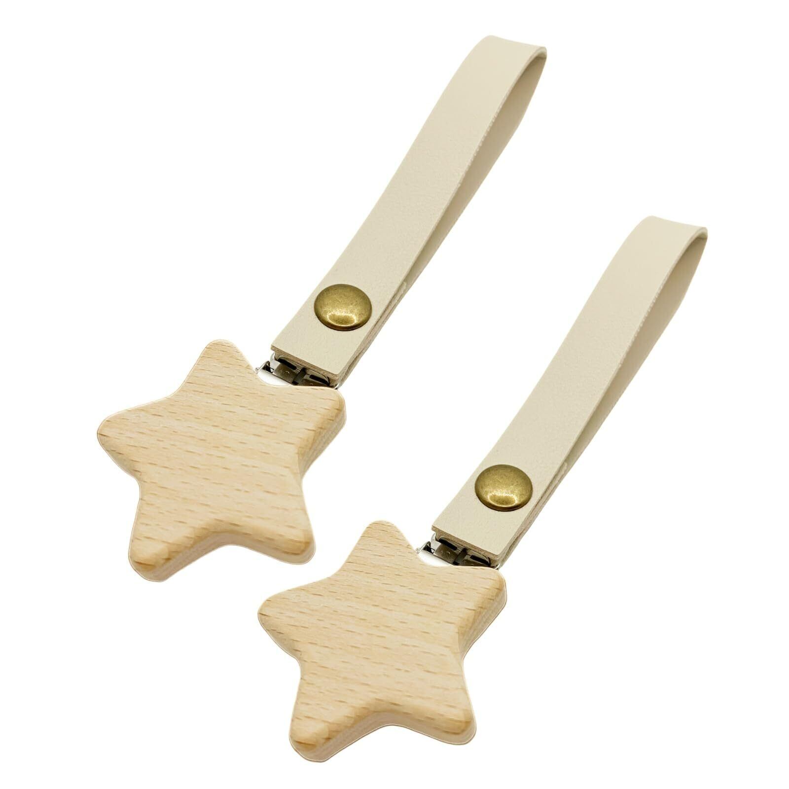 天然木製星型クリップとニュアンスカラーのPUレザーがおしゃれでかわいいブランケットクリップ。