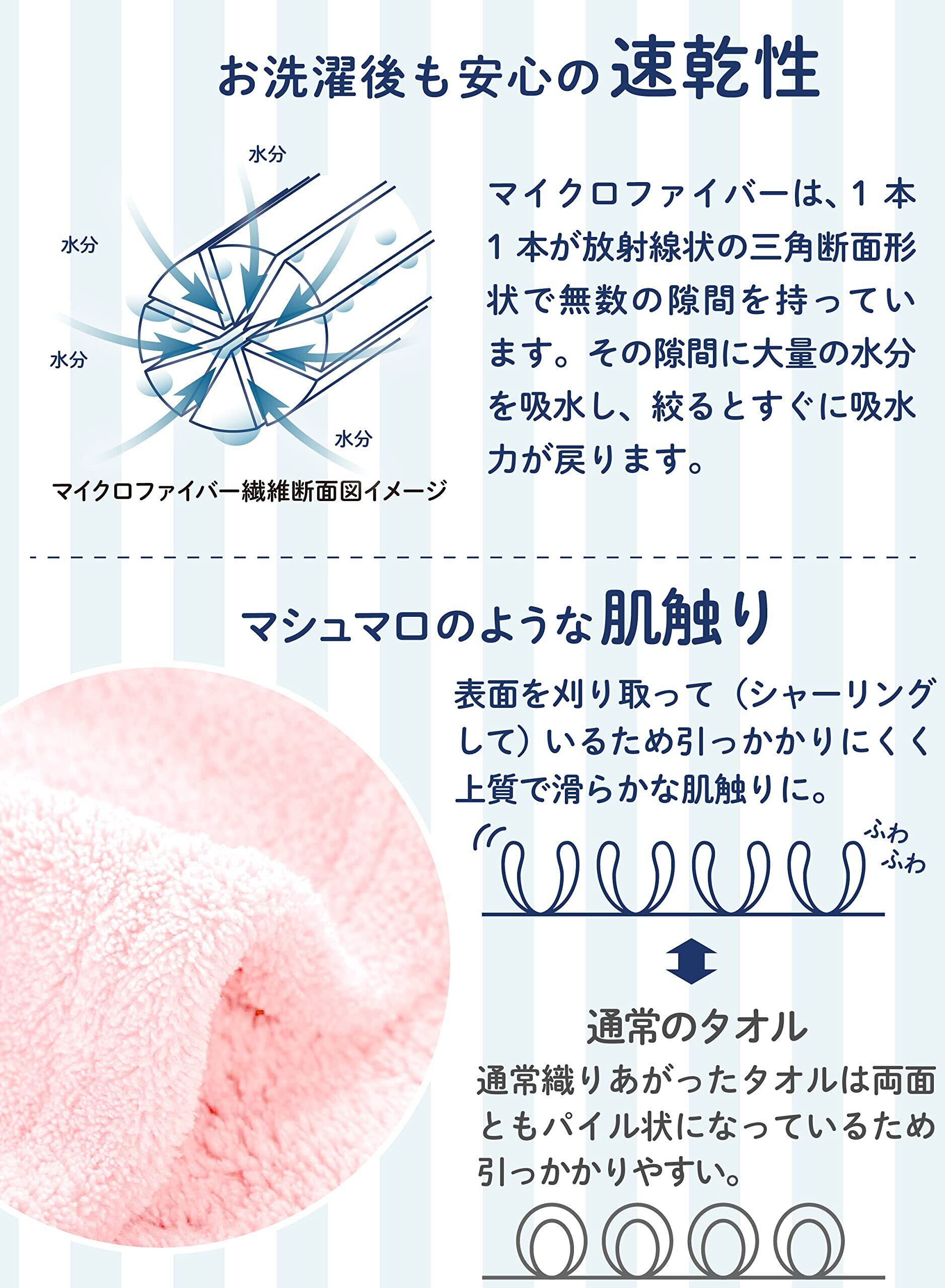【抜群の速乾性】マイクロファイバーは、1本1本が放射線状の三角断面形状で無数の隙間を持っています。通気性に優れた繊維なので、高い速乾性を発揮します。洗濯物の乾きにくい時期にも快適にお使いいただけます