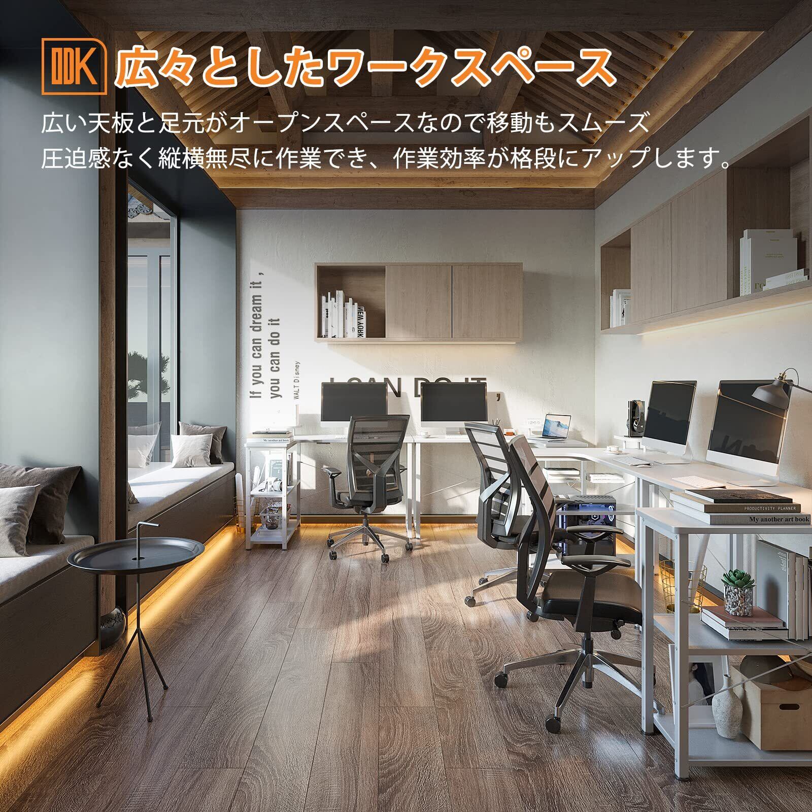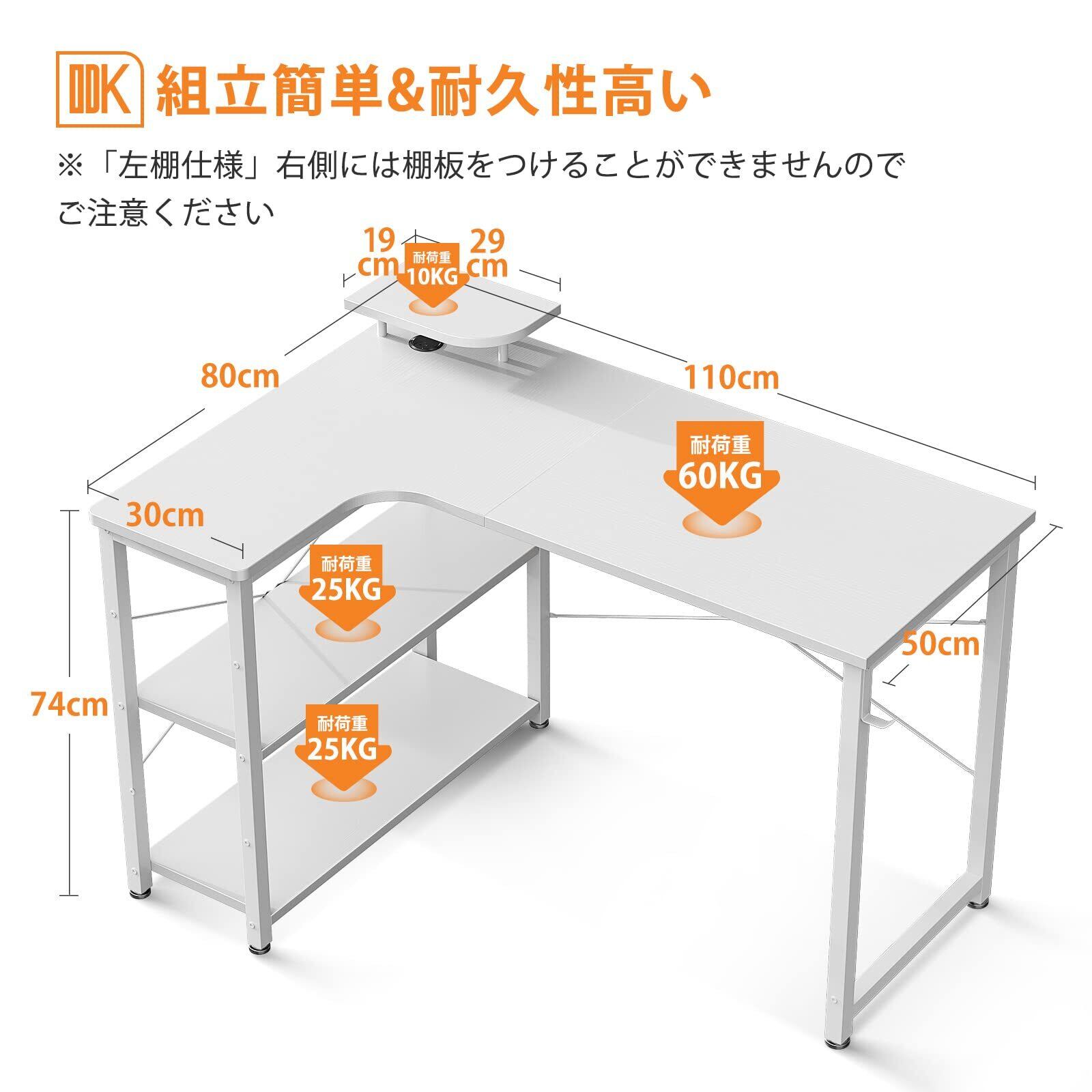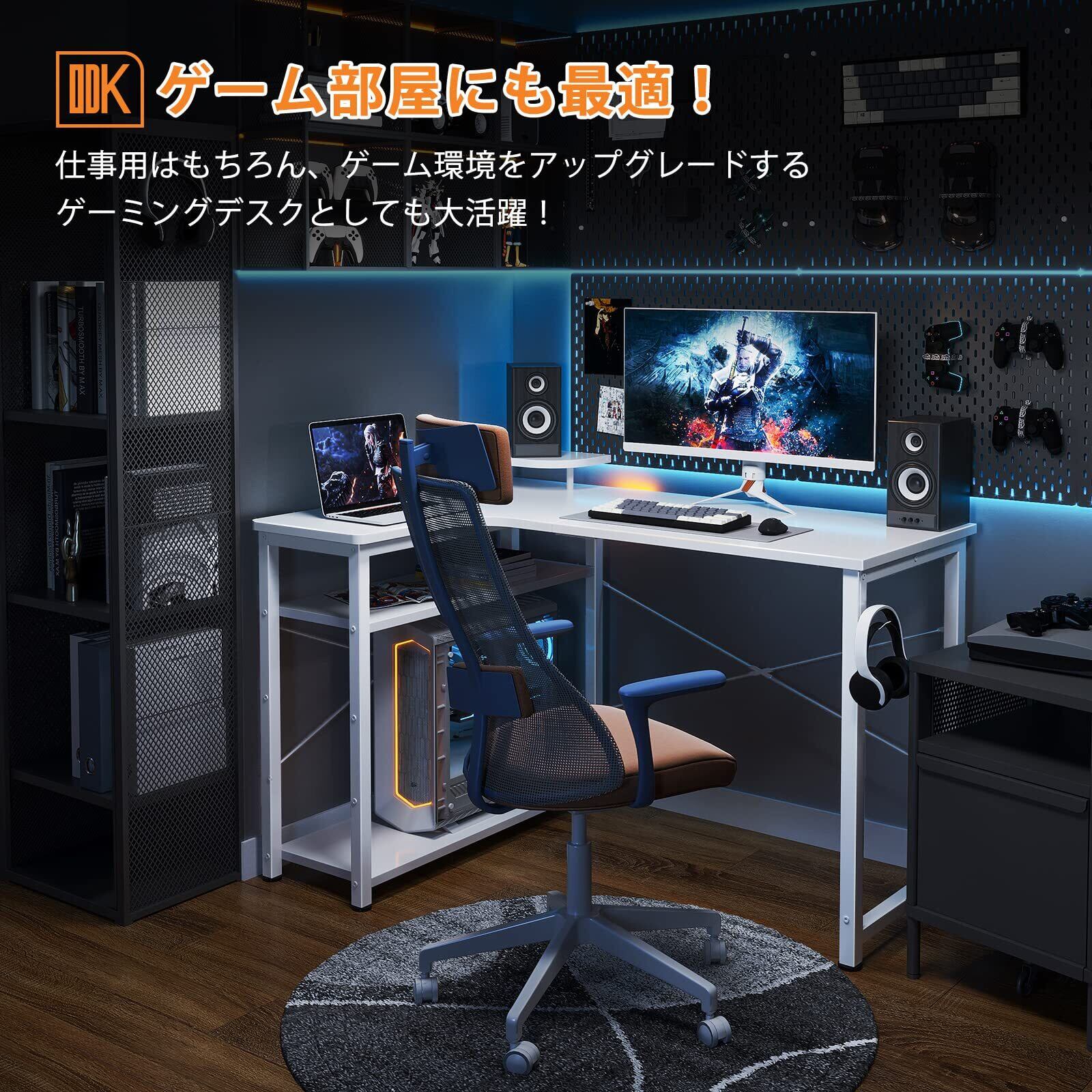 ODK パソコンデスク L字 ゲーミングデスク 幅110 L字デスク pcデスク desk 机 ラック付き 収納 オフィスデスク 在宅勤務 組立簡単 書斎 ホワイト 左棚
