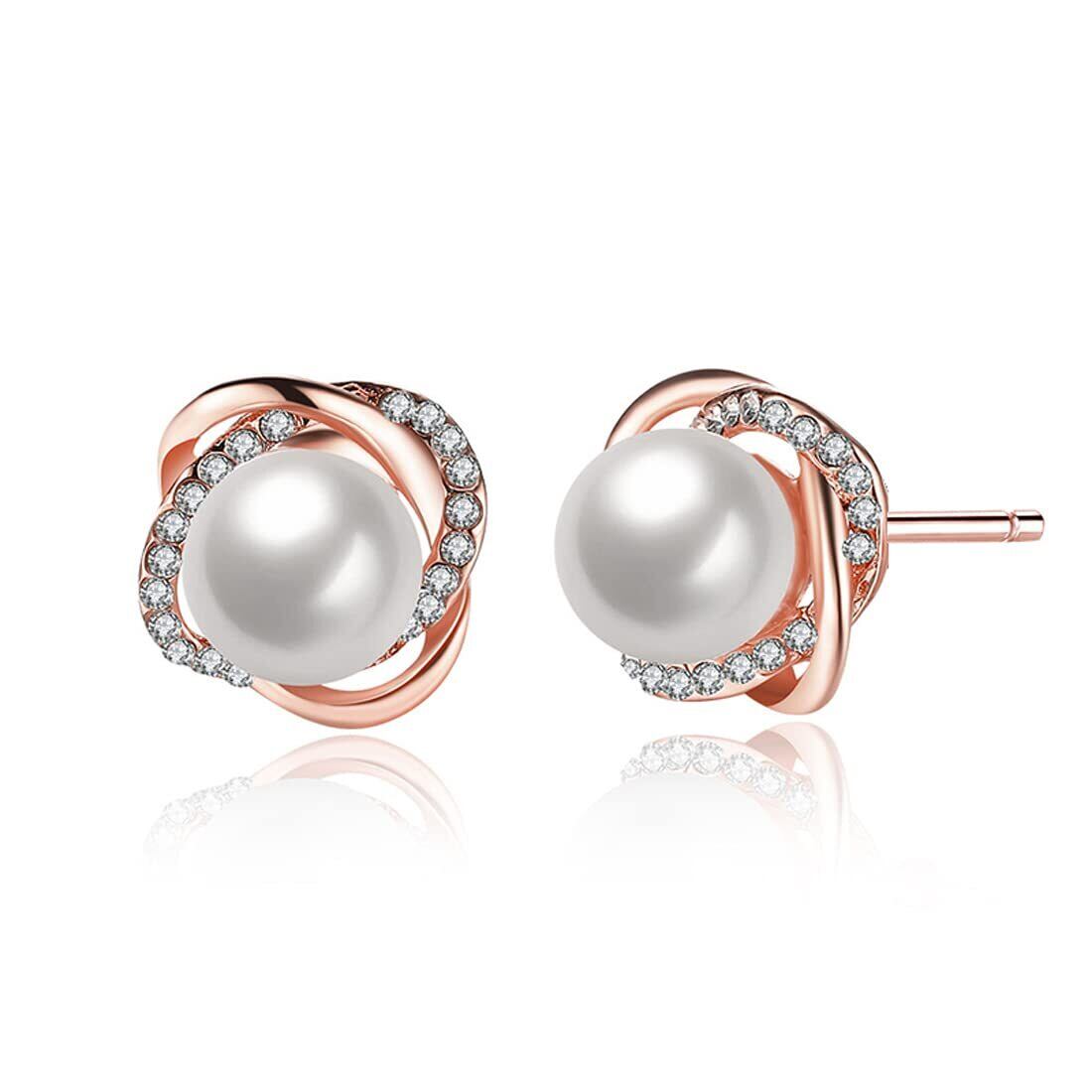 Rockyu ピアス レディース 人気 パールピアス 大人 小さめ ブランド シンプル スタッドピアス 金属アレルギー対応 18金メッキ ゴールド 5A ジルコニアイヤリング 女性 アクセサリー