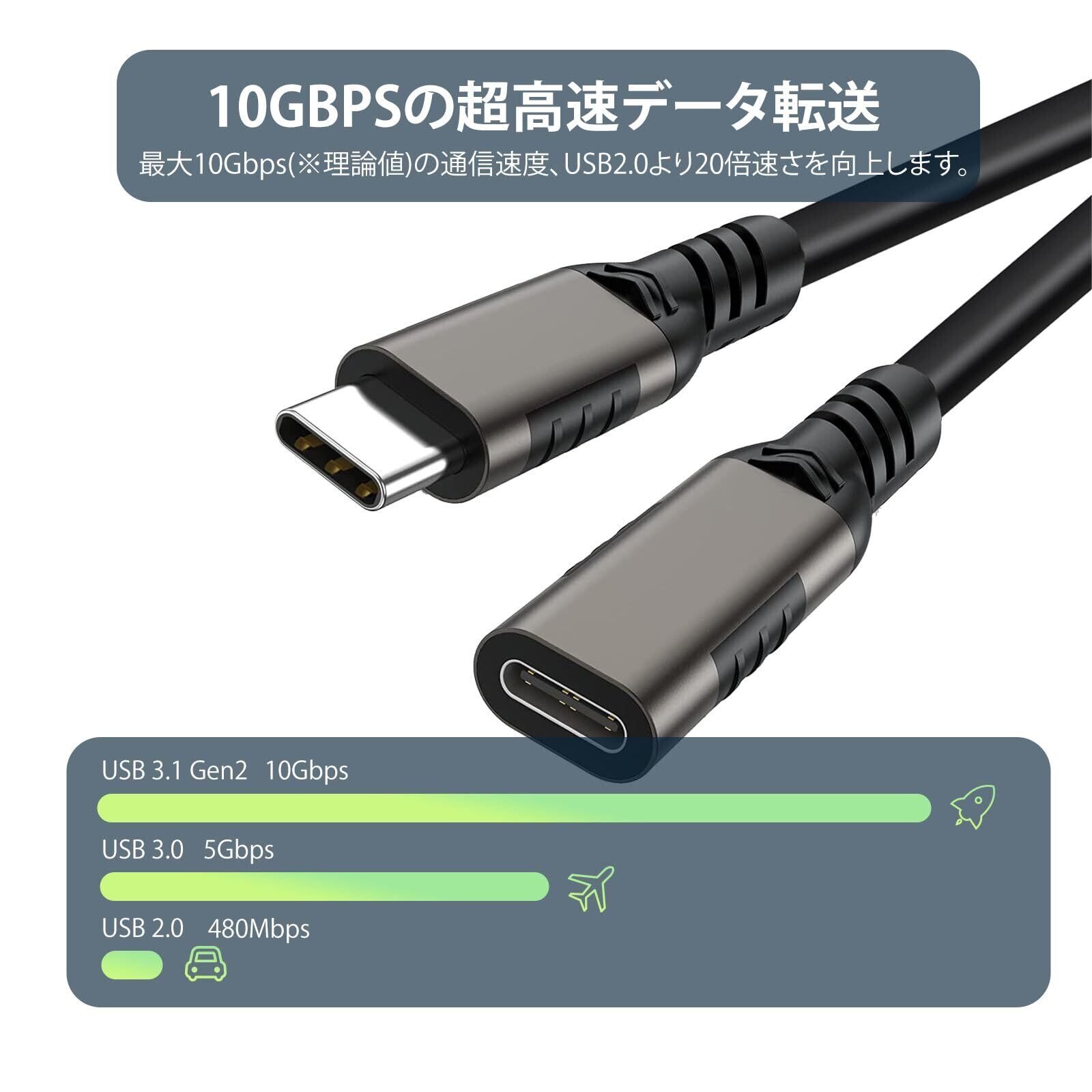 USB - C延長ケーブル(タイプCオス- タイプCメス):USB-Cデバイス間の接続を拡張するために使用されます。スイッチ、Type-Cスマートフォン、またはラップトップなどと互換性があり、充電またはデータ同期も実現可能です。