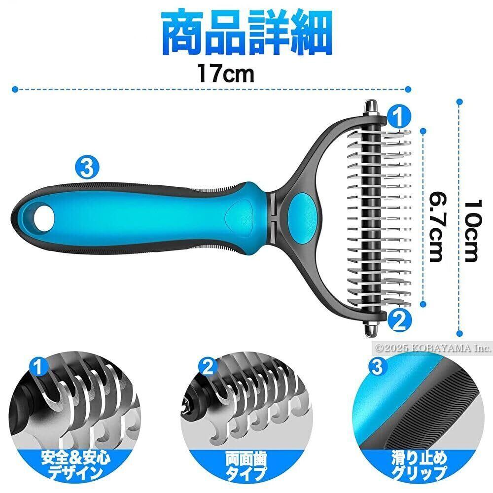 【ごっそり抜け毛除去】両面刃構造により粗目で毛をときほぐし、毛玉を取り除きます。細目で抜け毛を取り除きます。毛並みの状況によって刃の使い分けができます。