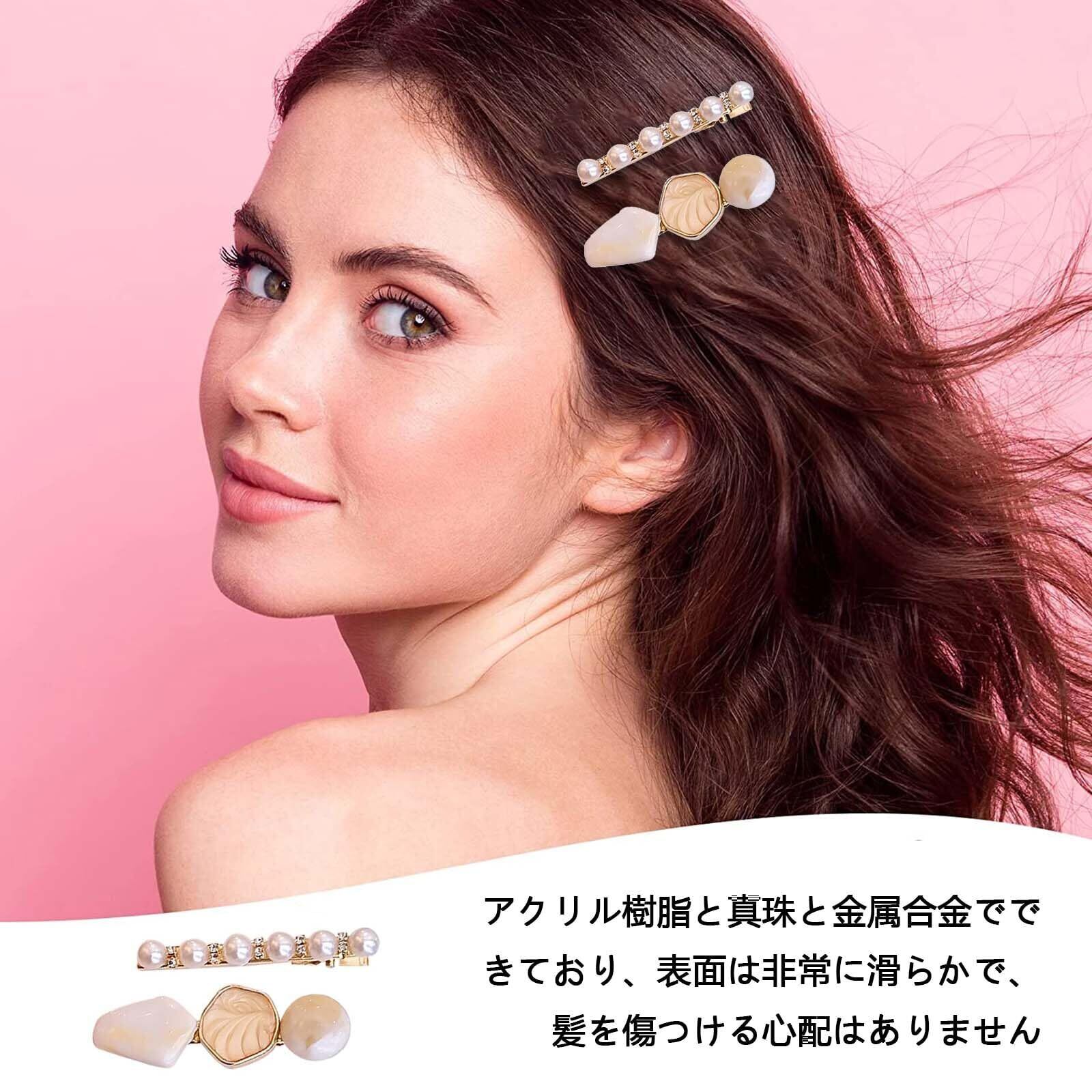 【簡単な操作】使い方は簡単で、髪にクリップで留めるだけで、簡単に完璧でかわいいヘアスタイルを作ることができ、いつまでも優雅に保つことができます。各種の髪質に適用する:粗髪、カール髪、ストレート髪などです。イミテーションパールは、とても滑らかで丸く作られているので、髪を傷める心配がありません。