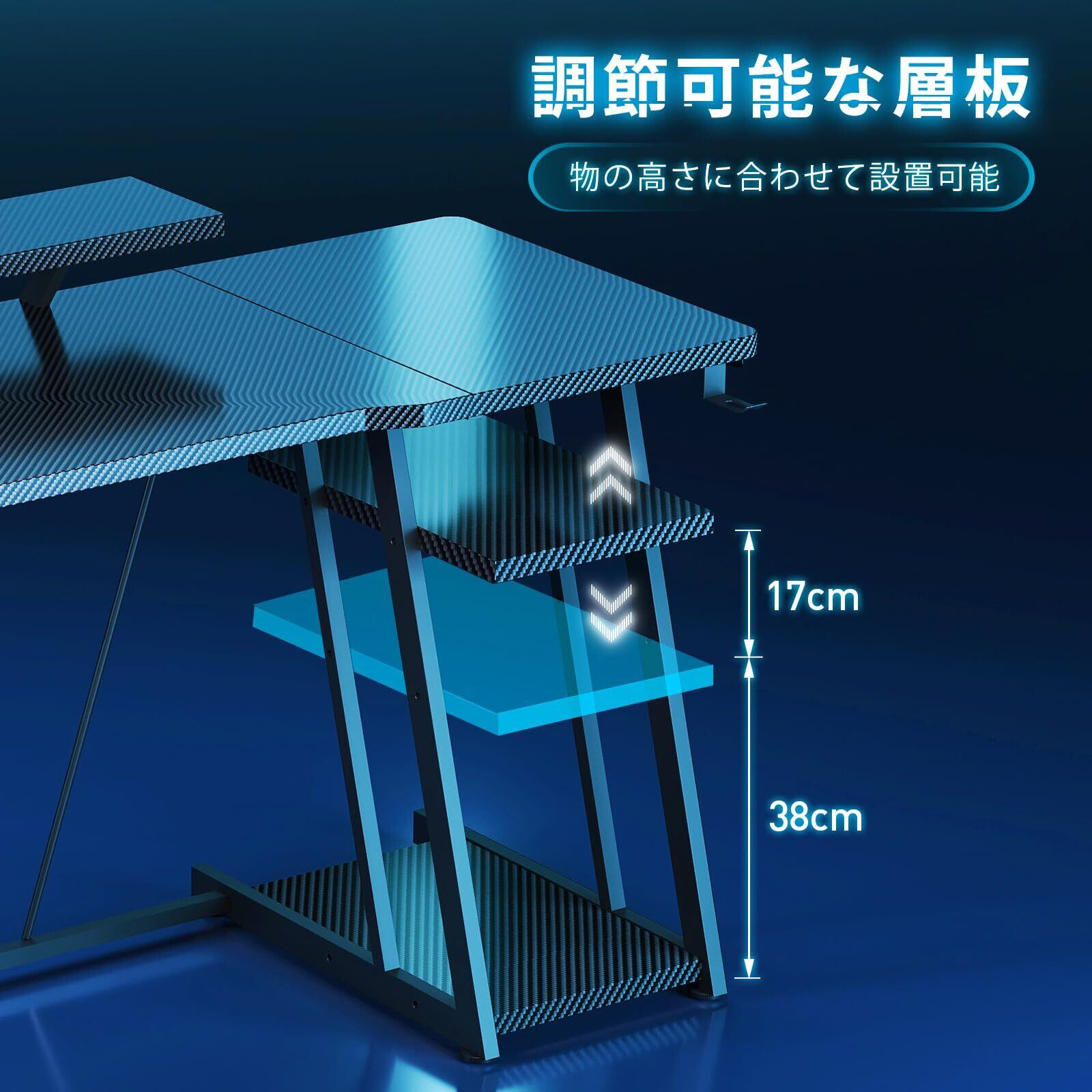 YeTom 大型ゲーミングデスク 120cm 拡張収納棚 マルチモニター3台設置 カーボンファイバー天板 ストリーミング特化ゲームデスク ブラック