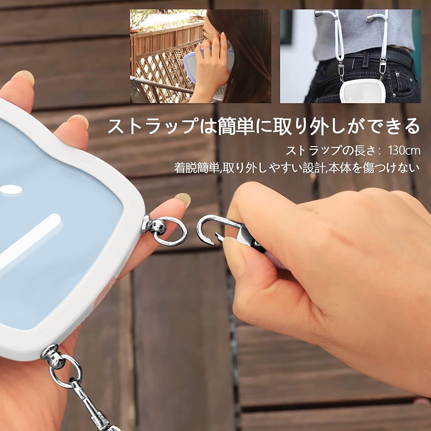【ネックレスケース】シリコンケースには首から下げられるようにショルダーストラップが付いており、まるでアクセサリーのようにスマホを着用できます。落下防止はもちろん、紛失防止にも役立ちます。 特に旅行や、小さなお子様がいるお母さんにおすすめ、手荷物がある時にスマホを持ち続ける必要がなくなりますし、スマホを落としたり無くしたりといった心配もなくなります、バッグから携帯を取り出す手間がはぶけます。
