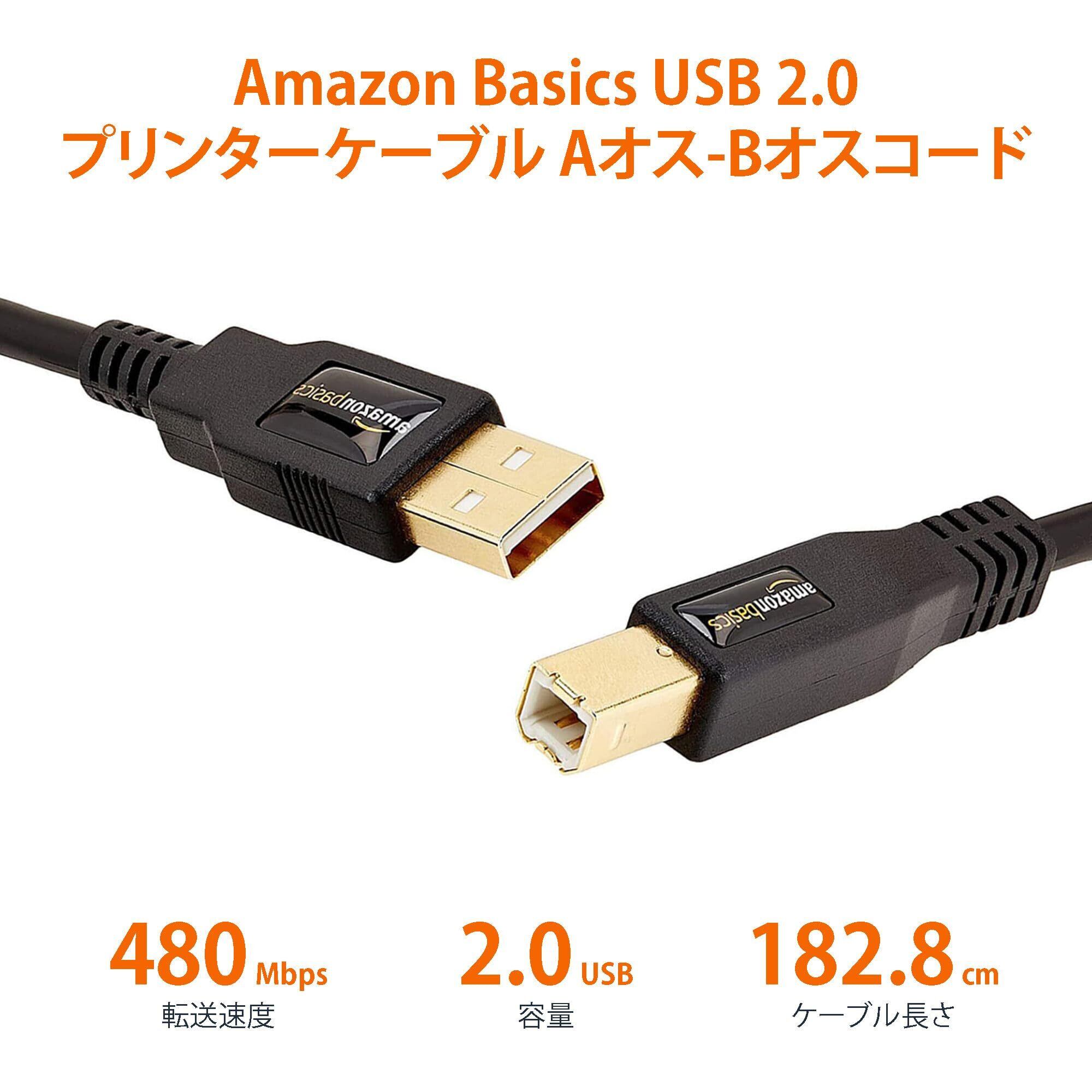 Amazonベーシック USB2.0 ケーブル (USB-A to USB-B) プリンター対応 1.8m (タイプAオス - タイプBオス) ブラック