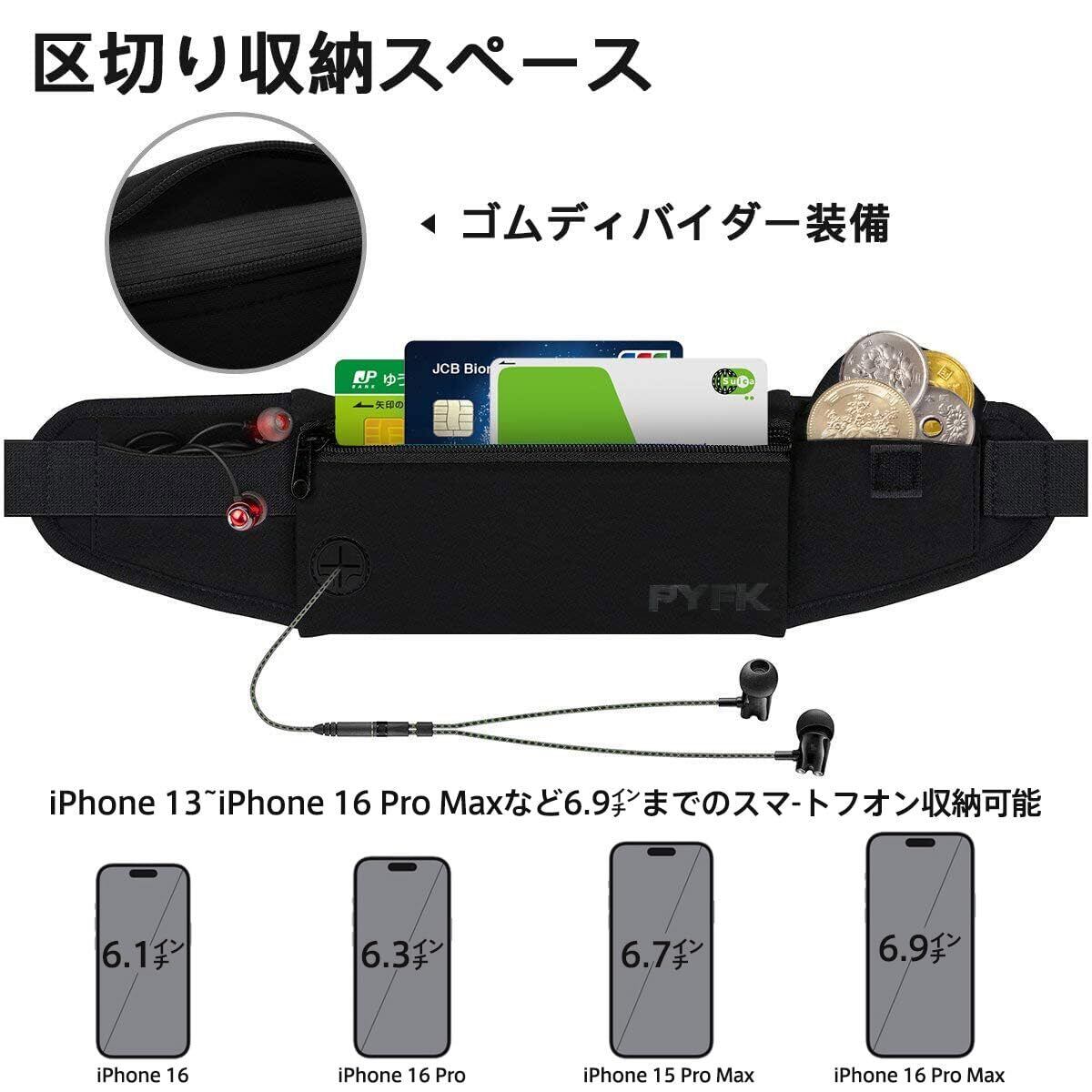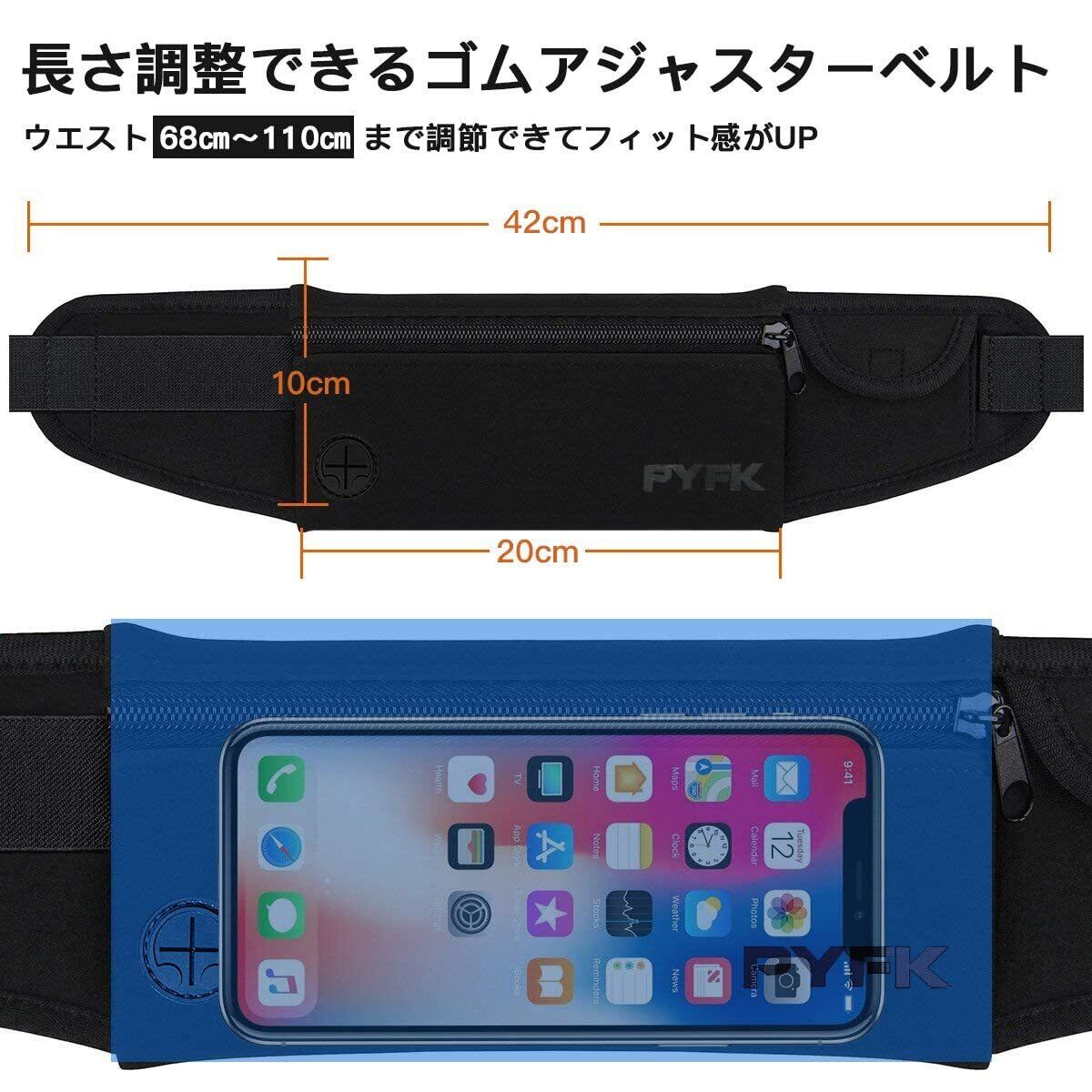 PYFK ランニングポーチ 軽量 防水 揺れない ウエストポーチ iPhone スマホ対応 ランニング ポーチ 薄型 おしゃれ メンズ レディース