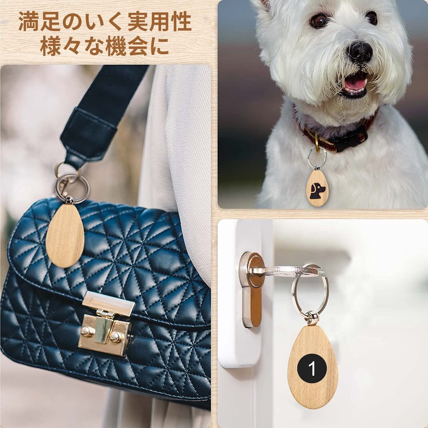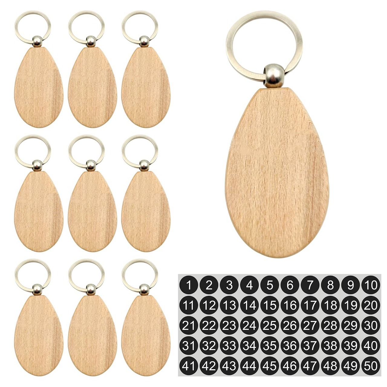 Doyime ドア番号タグ 番号札 10個セット クローク 両面 無地 荷札 キーラベルタグ 天然木 業務管理用 キーリング付き 1-50番号シール 付き