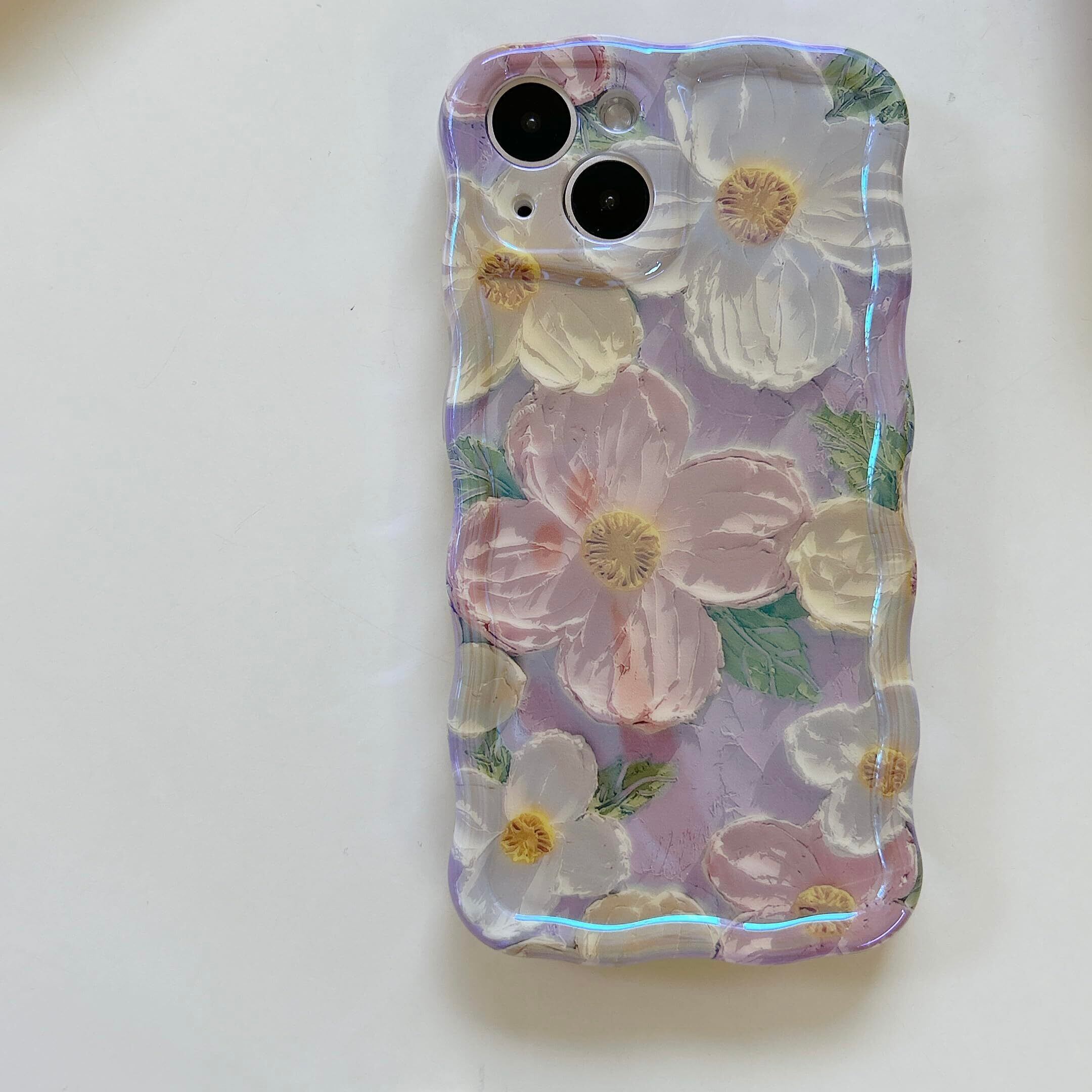 【花柄デザイン ▪ フィット感】背面にカラフルな油絵の花柄、色味が優しく、いつものスマホに上品さをプラス。側面が透明なデザインからiPhone 13カラーが見えるデザインで、本来の美しさと高級感をそのままに映り出し。