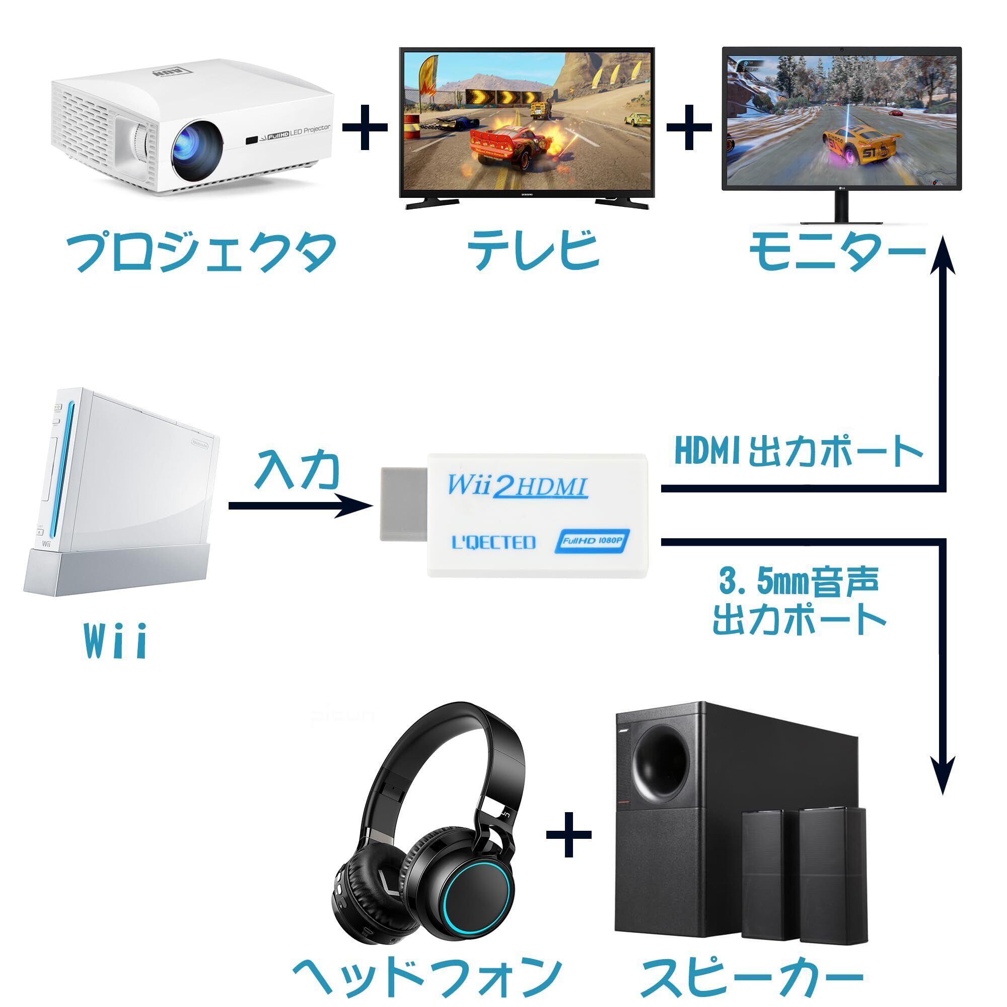 L'QECTED Wii To HDMI 変換アダプタ(1.5M HDMI接続ケーブルが付属します) Wii専用HDMI コンバーター480p/720p/1080pに変換 3.5mmオーディオ-HDMI接続でWiiを1080pに変換出力-wii hdmi変換アダプター