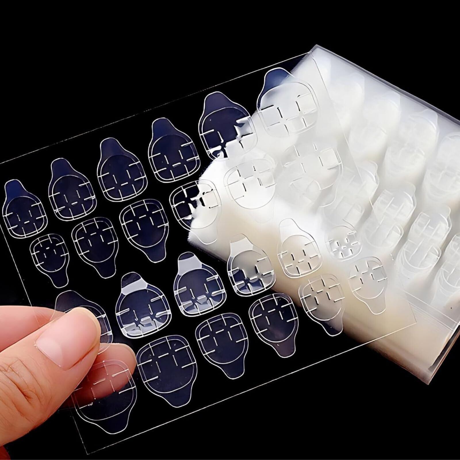 ネイルチップ用両面テープ。10シートセット(24枚/1シート)。【簡単装着で手軽に楽しむネイルアート】ネイルチップ取付用両面テープは、その簡単な使用方法で初心者でも手軽に美しいネイルアートを楽しむことができます。貼るだけで完了するため、忙しい日常の中でも素早くネイルチェンジが可能です。