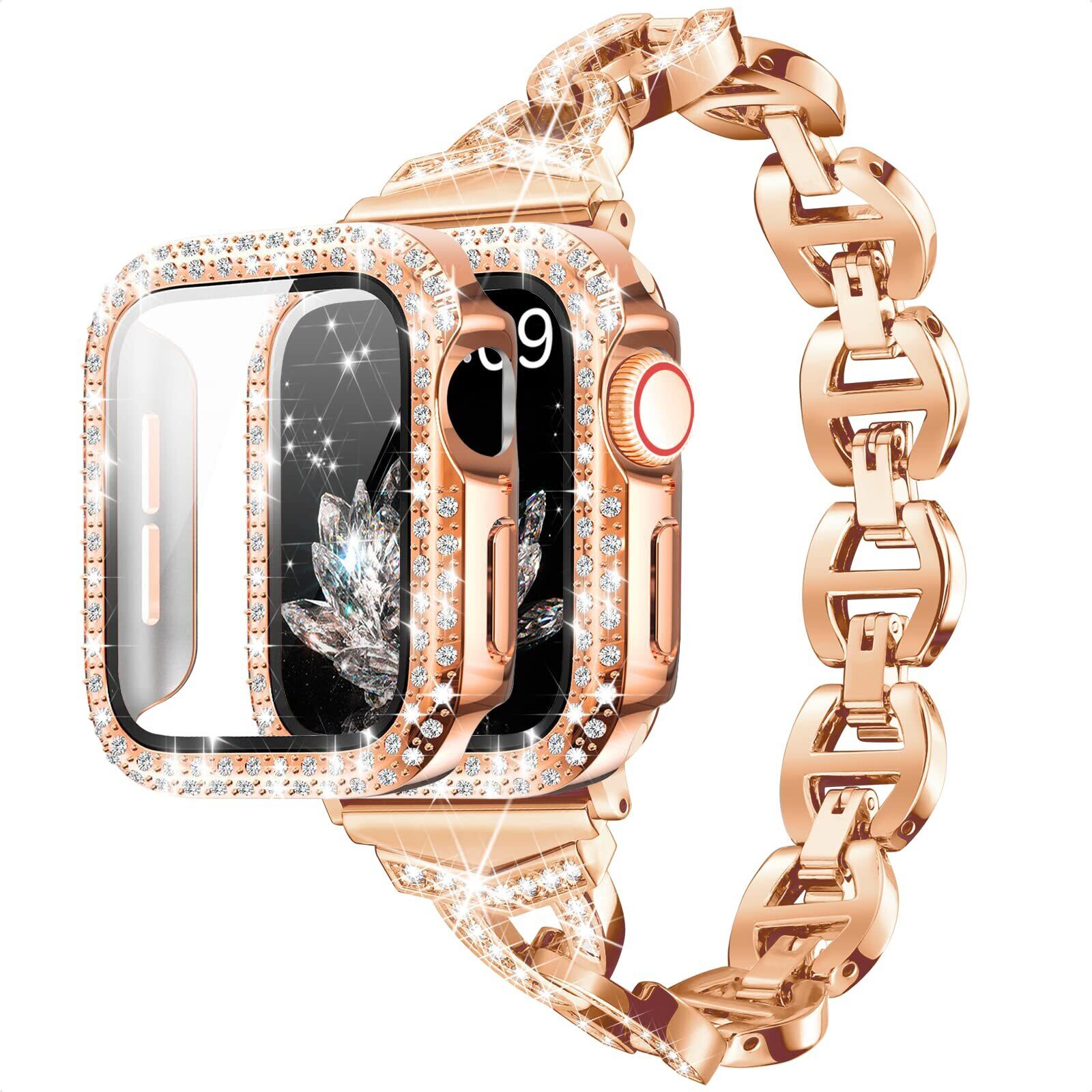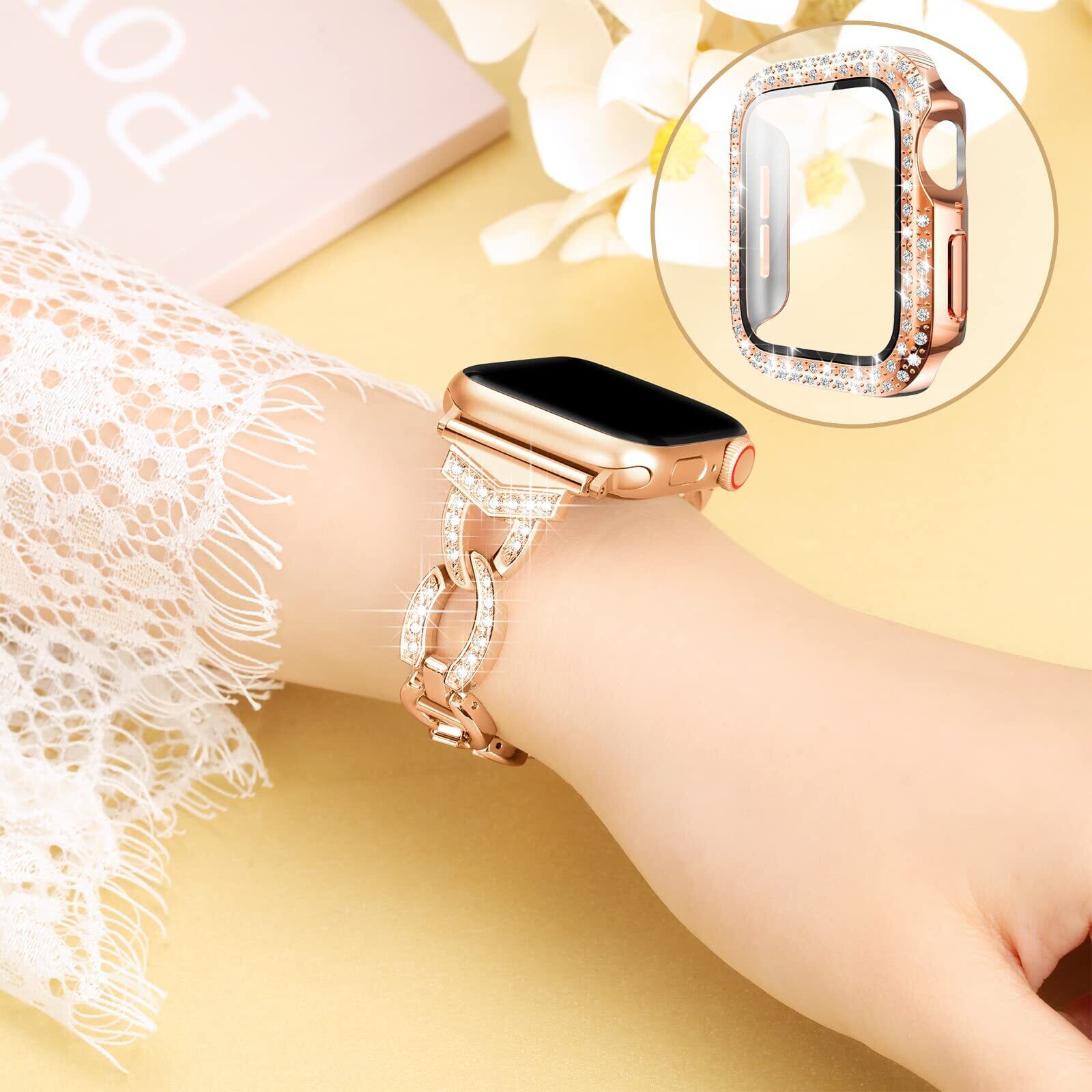 【Daturus】互換性があります Apple Watch バンド ダイヤモンドラインストーンAppleWatchケース付き アップルウォッチ ベルト ステンレス アップルウォッチバンド(ローズゴールド バンド、一つローズゴールドのケース付き,44mm series 6/5/4/SE) | yankees