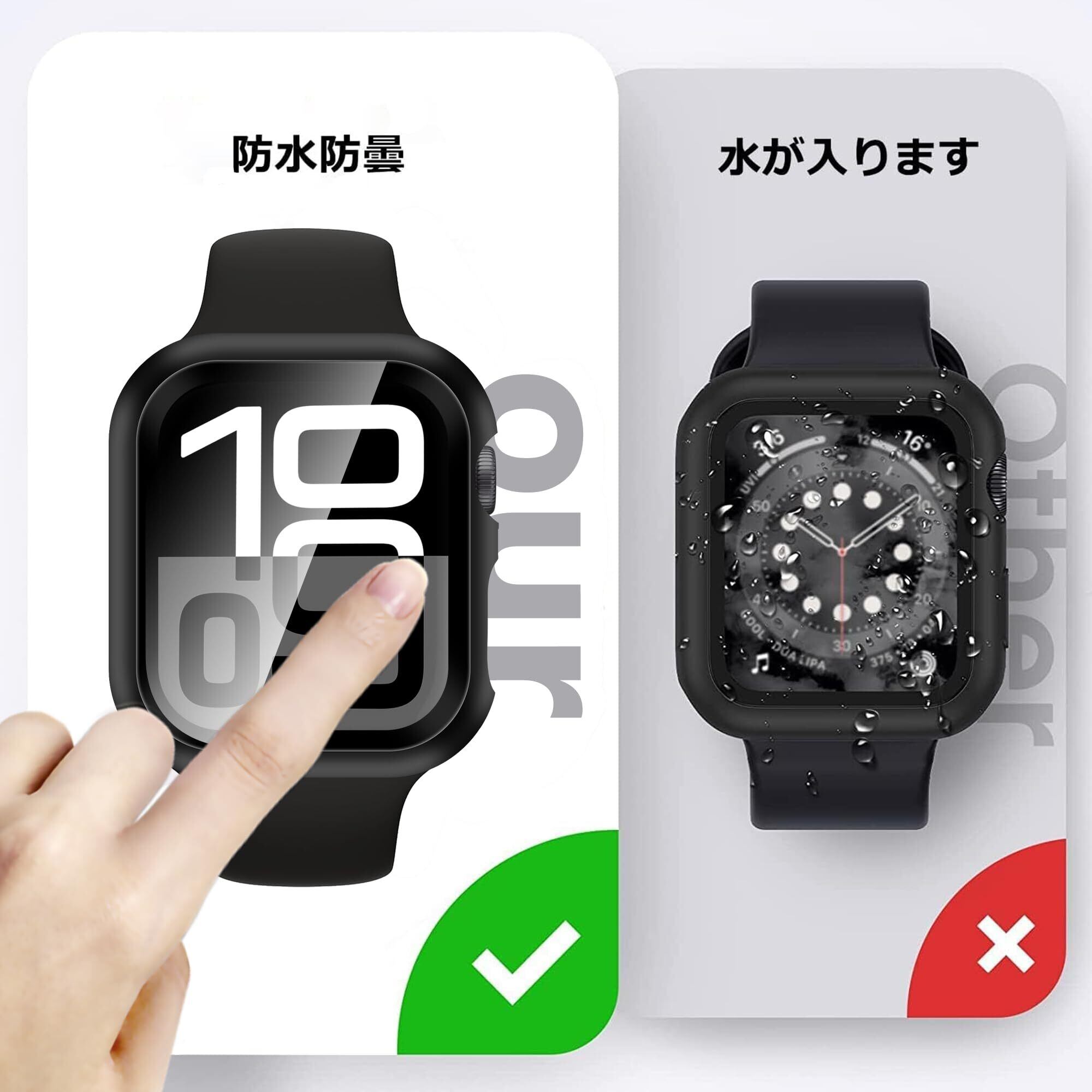 LIRUWECH for Apple Watch 10ケース 42mm 防水アップルウォッチ10防水カバー ガラスフィルム 一体型 apple watch series 10対応 PC素材 耐衝撃 タッチ感良好 衝撃吸収 防塵 Apple Watch 10アクセサリー Apple Watch 10 case 全面保護 高透過率 指紋防止 (42mm,ブラック)