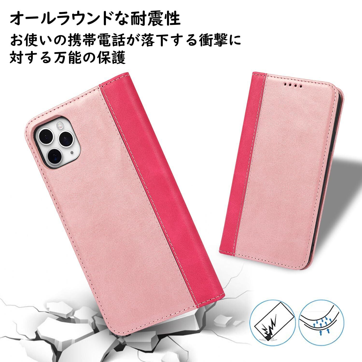【耐衝撃素材】外部のTPUレザーと内部の耐衝撃性PU素材という二重保護で、おしゃれ外観で放熱性や耐衝撃性がよいし、すり傷防止や防塵に優れています。変形しにくくて、全面保護を与える同時に着脱しやすいです。ケースを装着したまま、カメラ、電源ボタン、音量ボタン、コネクタなどが使用可能。