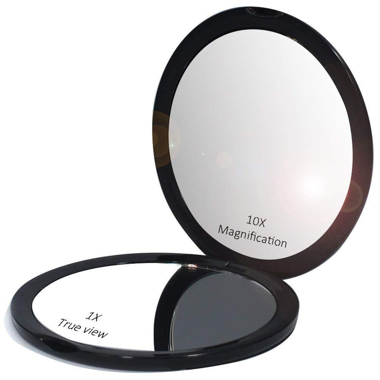 コンパクトミラー 化粧鏡 10倍拡大鏡 折りたたみ鏡 手鏡 両面鏡 角度調整可 超軽量(ブラック)