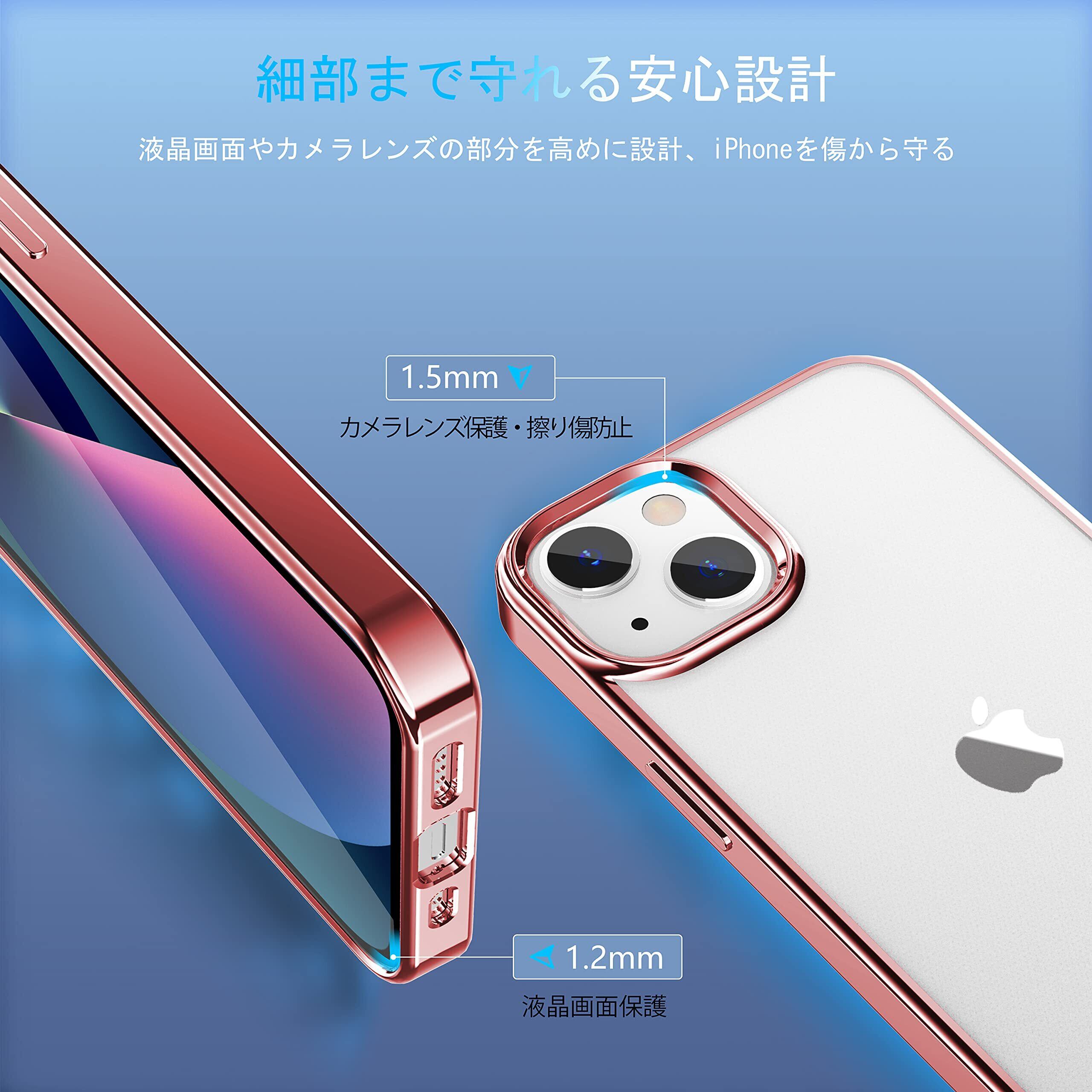 ORANGA iPhone13 / iPhone14 用 ケース 半透明 超耐衝撃 マット感 薄型 ドイツバイエル製TPU素材 黄変防止 メッキ枠 ソフトケース 指紋防止 ワイヤレス充電 レンズ保護 アイフォン13/14用カバー ローズゴールド | yankees