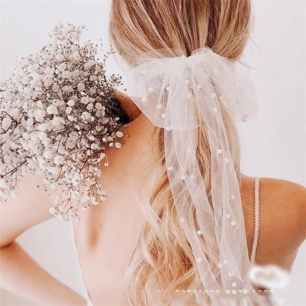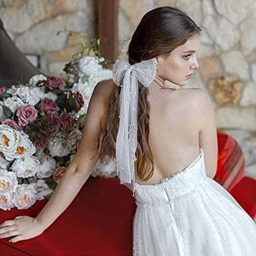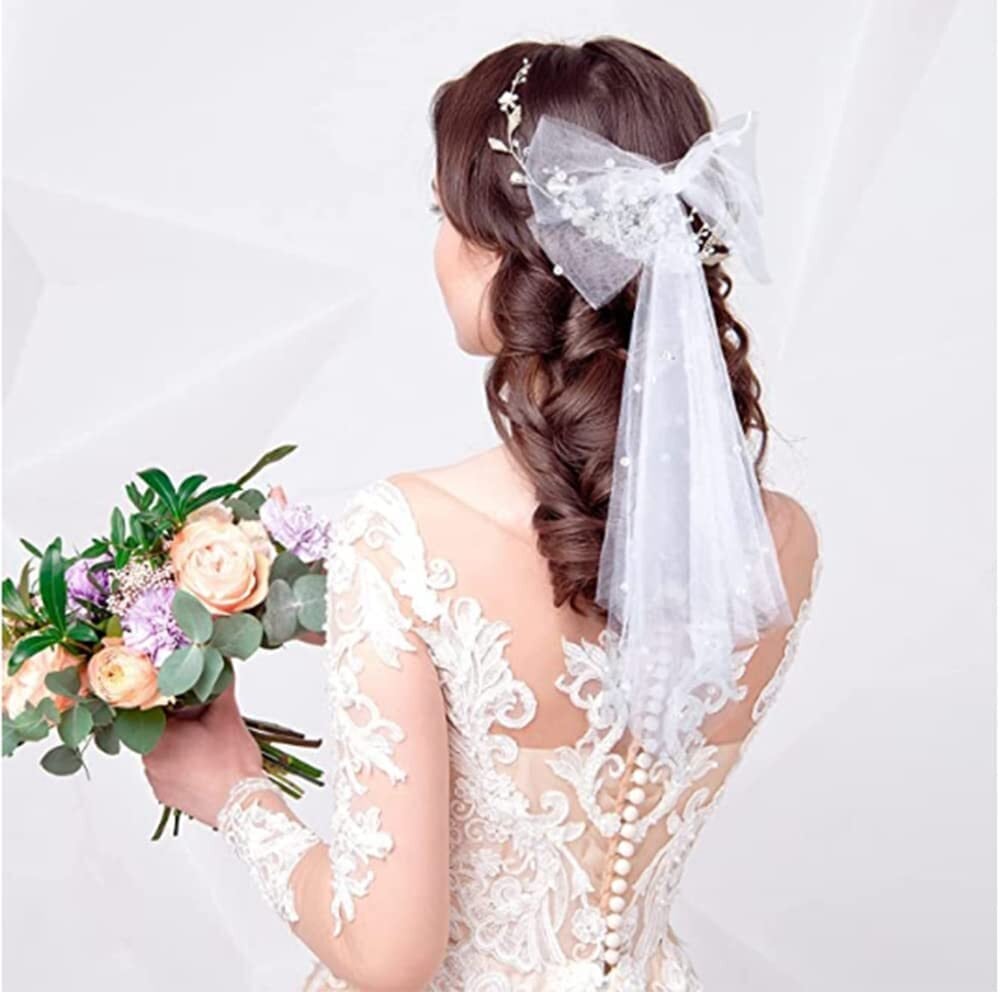 FASELE 髪飾り 長いリボン ヘアアクセサリー 美しい チュール リボン ヘアクリップ蝶結び 森ガール 姫系 パール ヘアリボン 花嫁 結婚式 誕生日 パーティー 発表会 演奏会 1pc | yankees