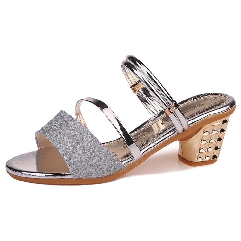 [五重桔梗] レディース サンダル ヒール低め ミュール キラキラ ストラップ オープントゥ シューズ