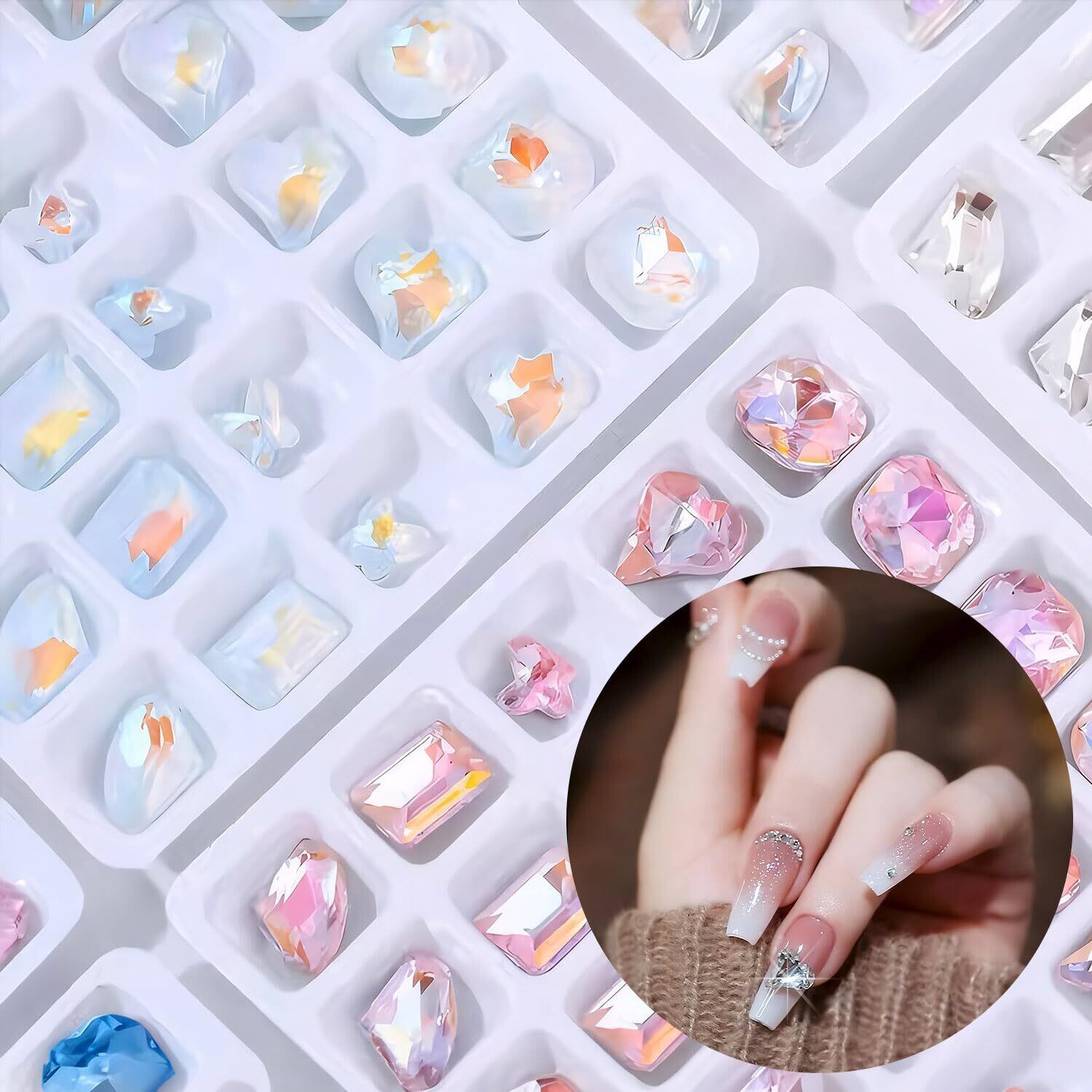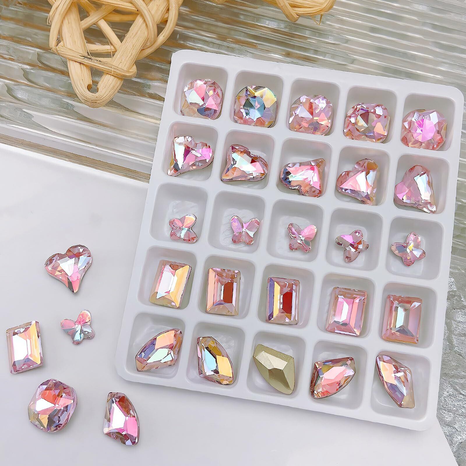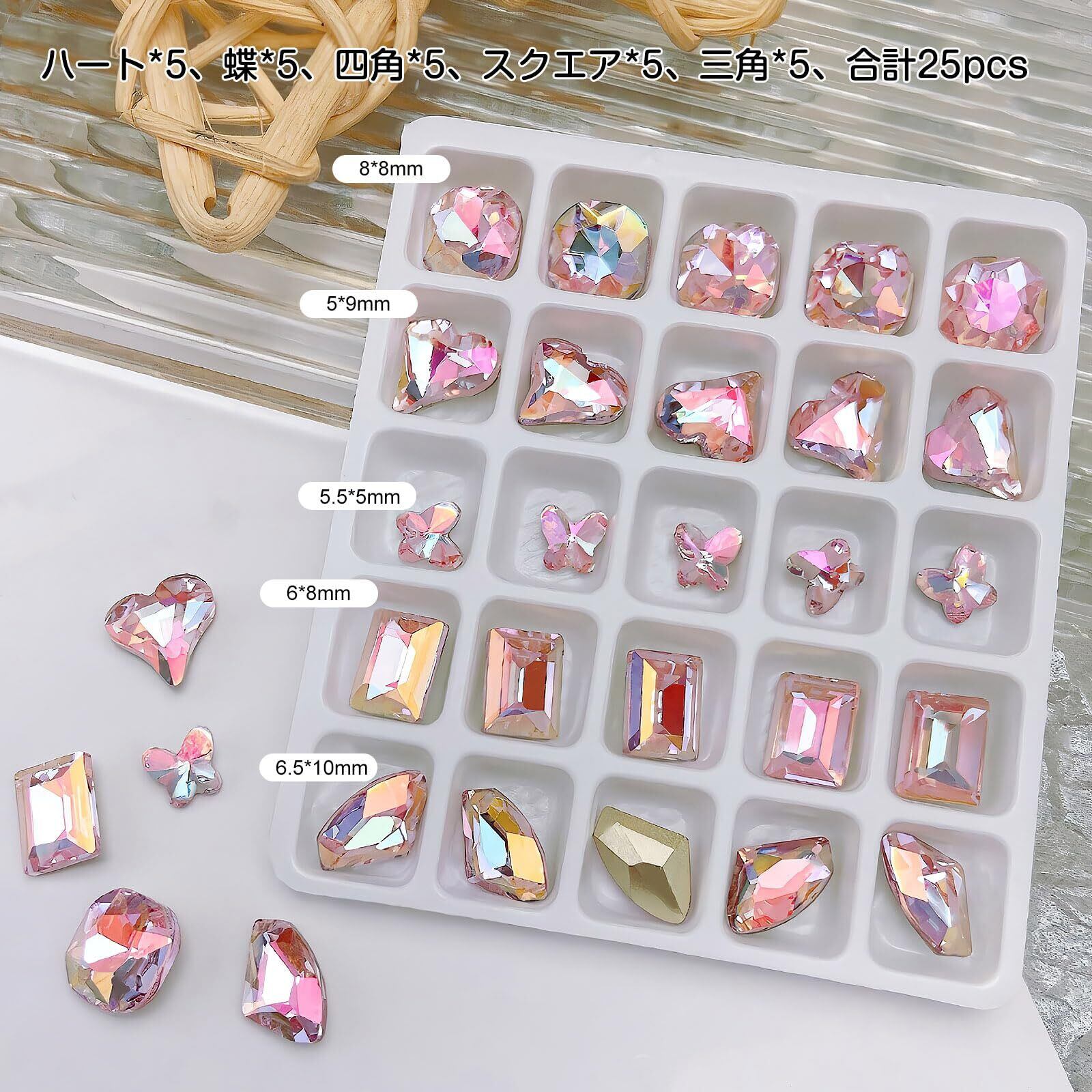 Chisafly ネイルパーツ ストーン クリア ネイルストーン 透明 キラキラ 立体 クリスタル 四角 スクエア ハート 蝶 25個セット (オーロラ-ピンク)