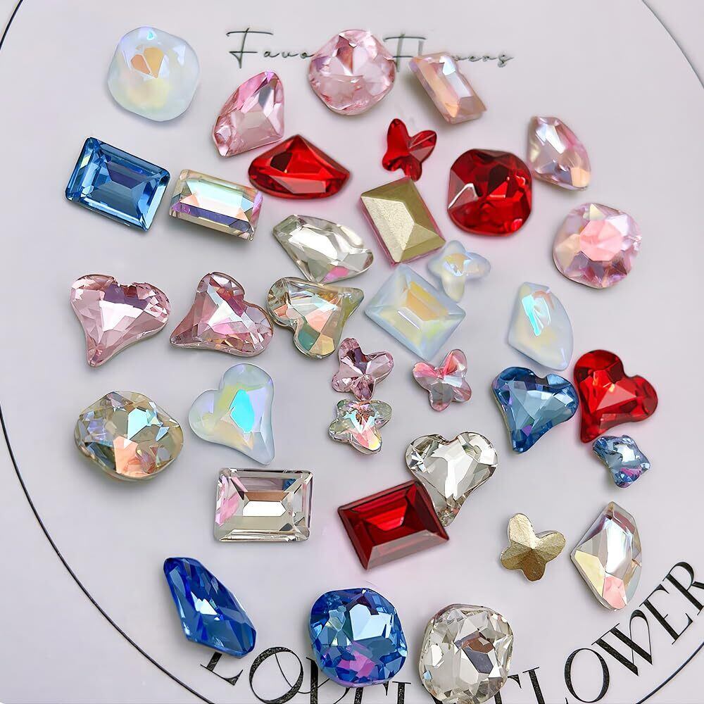 【5つの形】セットには、5つの形(ハート 蝶 四角 スクエア 三角)のネイルストーンがあって、ネイルのスタイルに合わせてネイルパーツを選択します