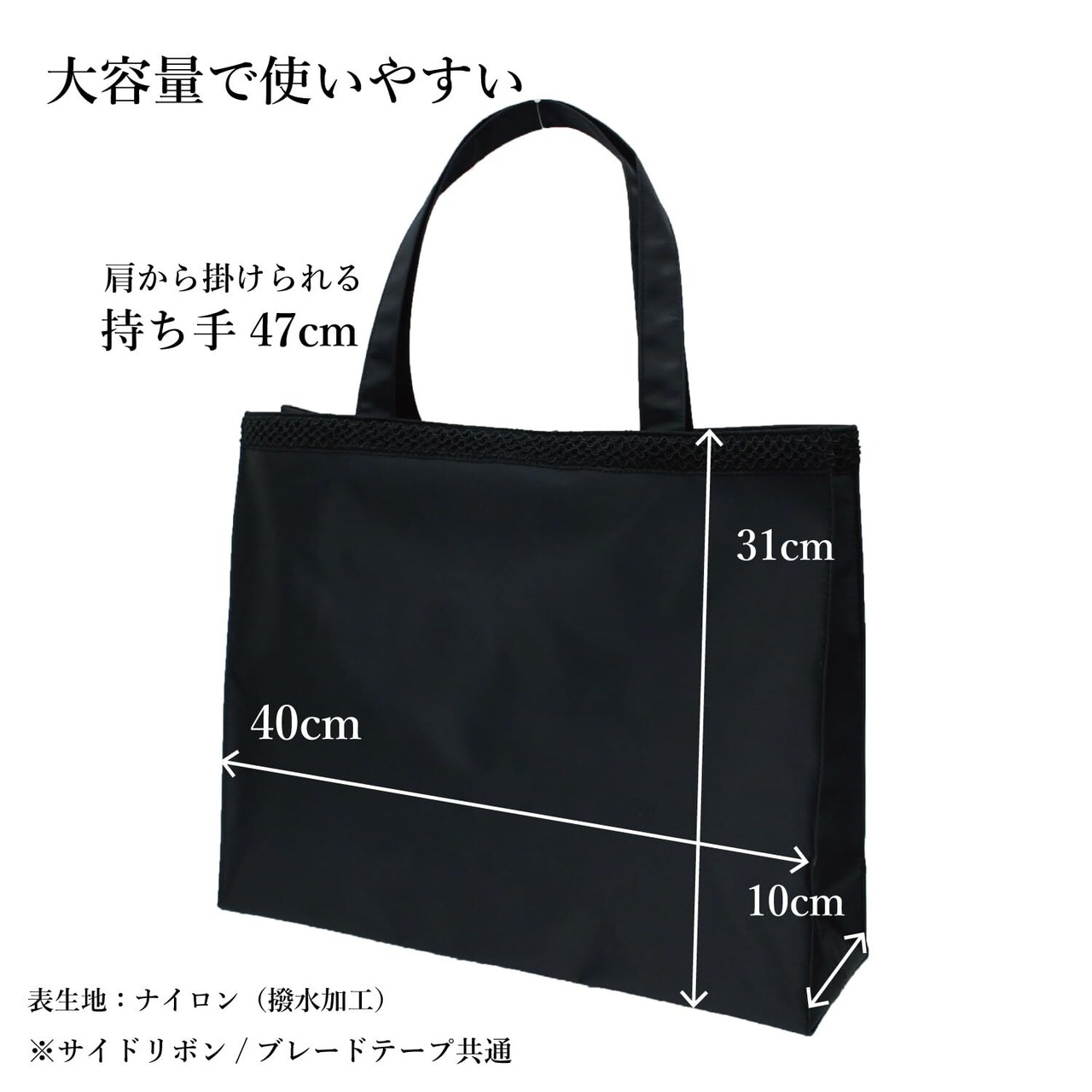 素材 表生地:ナイロン生地(撥水加工) 内生地:ポリエステル 底板:PE(ポリエチレン) サイドリボン:グログランテープリボン使用