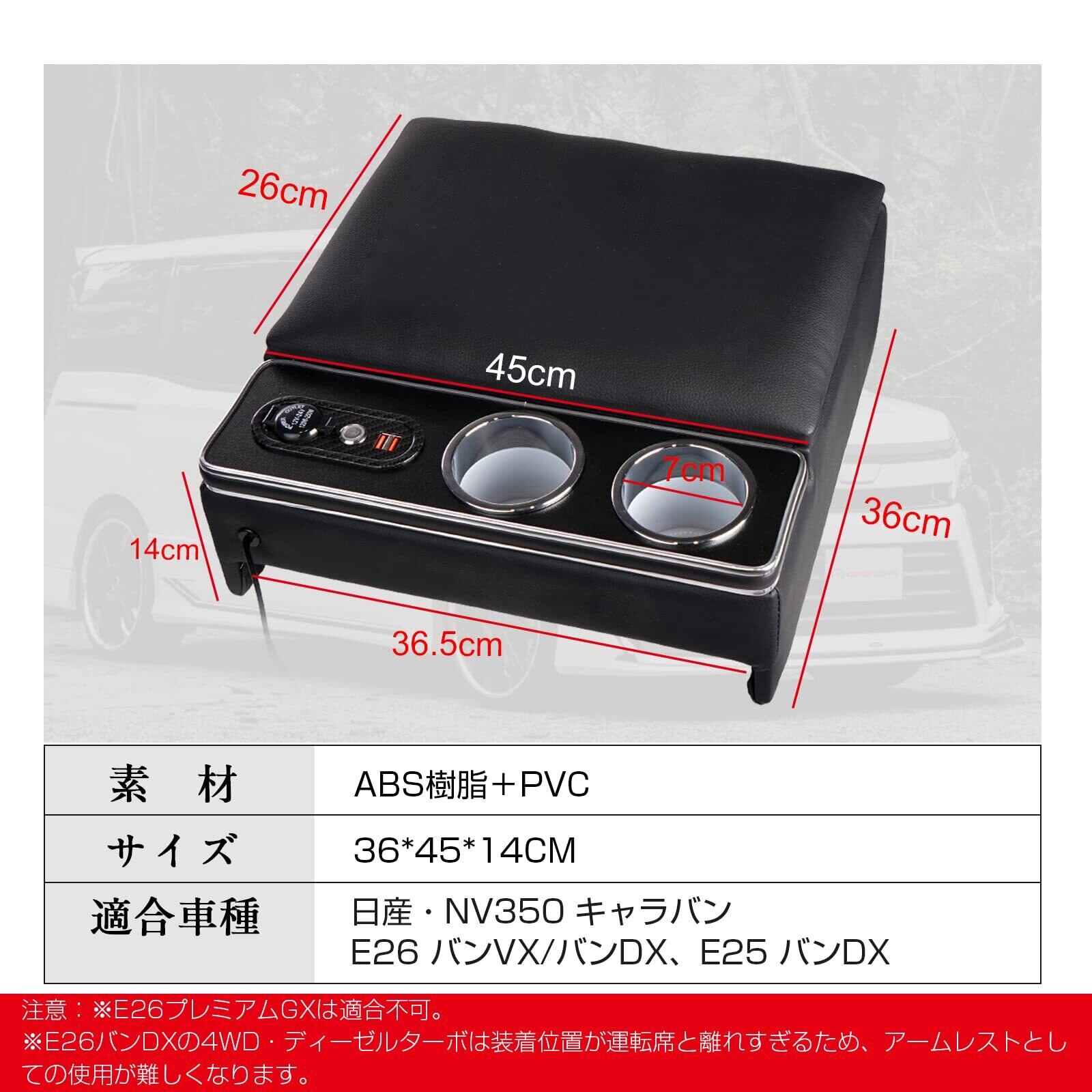 YESHMA コンソールボックス NV350 キャラバン E26/E25 専用 アームレスト E26 バンVX/DX E25 バンDX H13/04~現行 適用 センターコンソールボックス ドリンクホルダー スマートコンソール LED付き USBポート付き | yankees