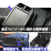 【車内の居住性アップ】本コンソールボックスには、リッド(カバーぶた)がアームレストを兼用しているタイプです。リッドを開けば、収納スペースとして活用できます。スマホやタブレットの充電に対応するUSBチャージャーを内部に備えます。