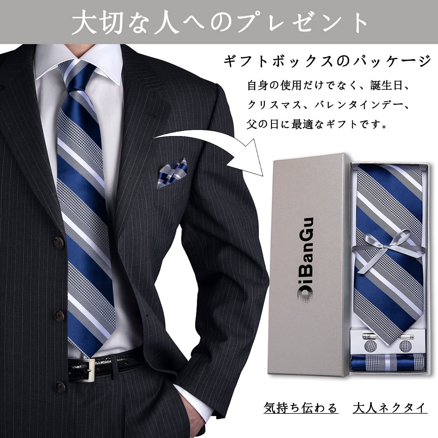 [DiBanGu] ネクタイ ストライプ ネクタイ ハンカチ カフスボタン タイピン セット 結婚式 ビジネス 入学式 卒業式 忘年会