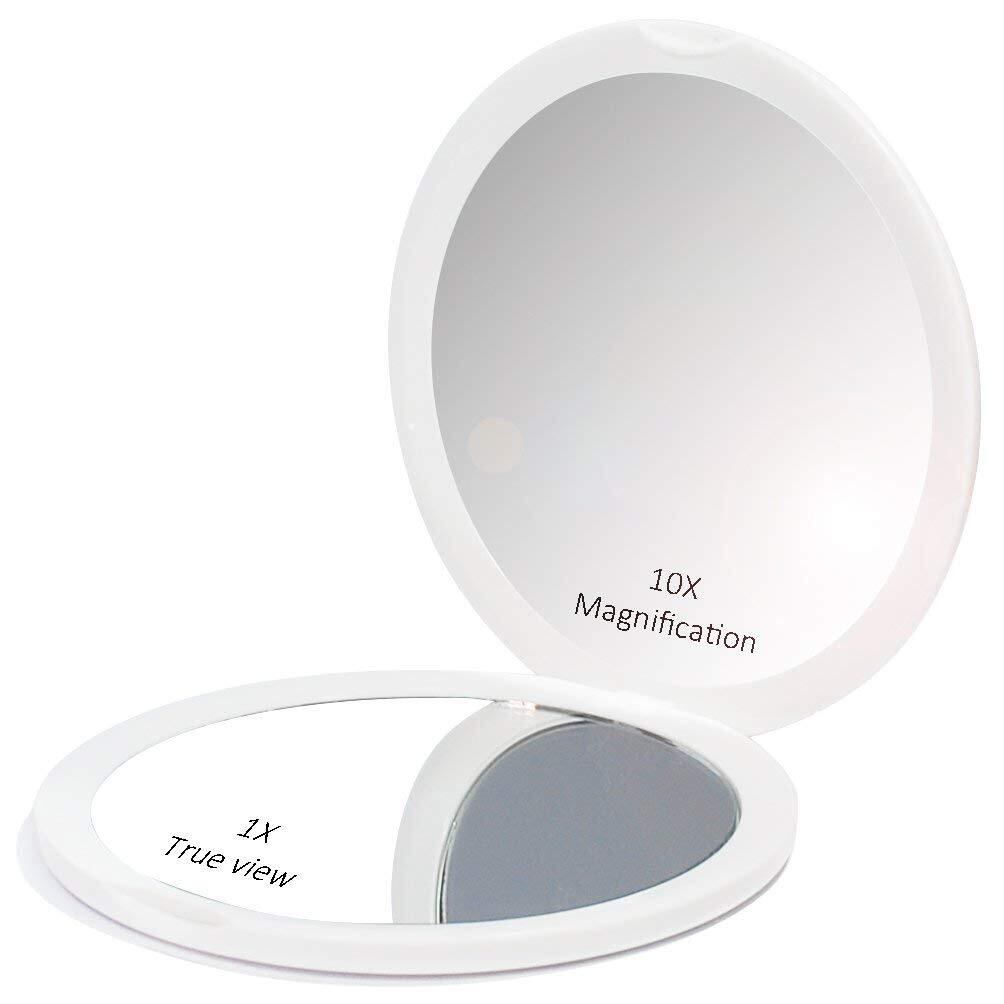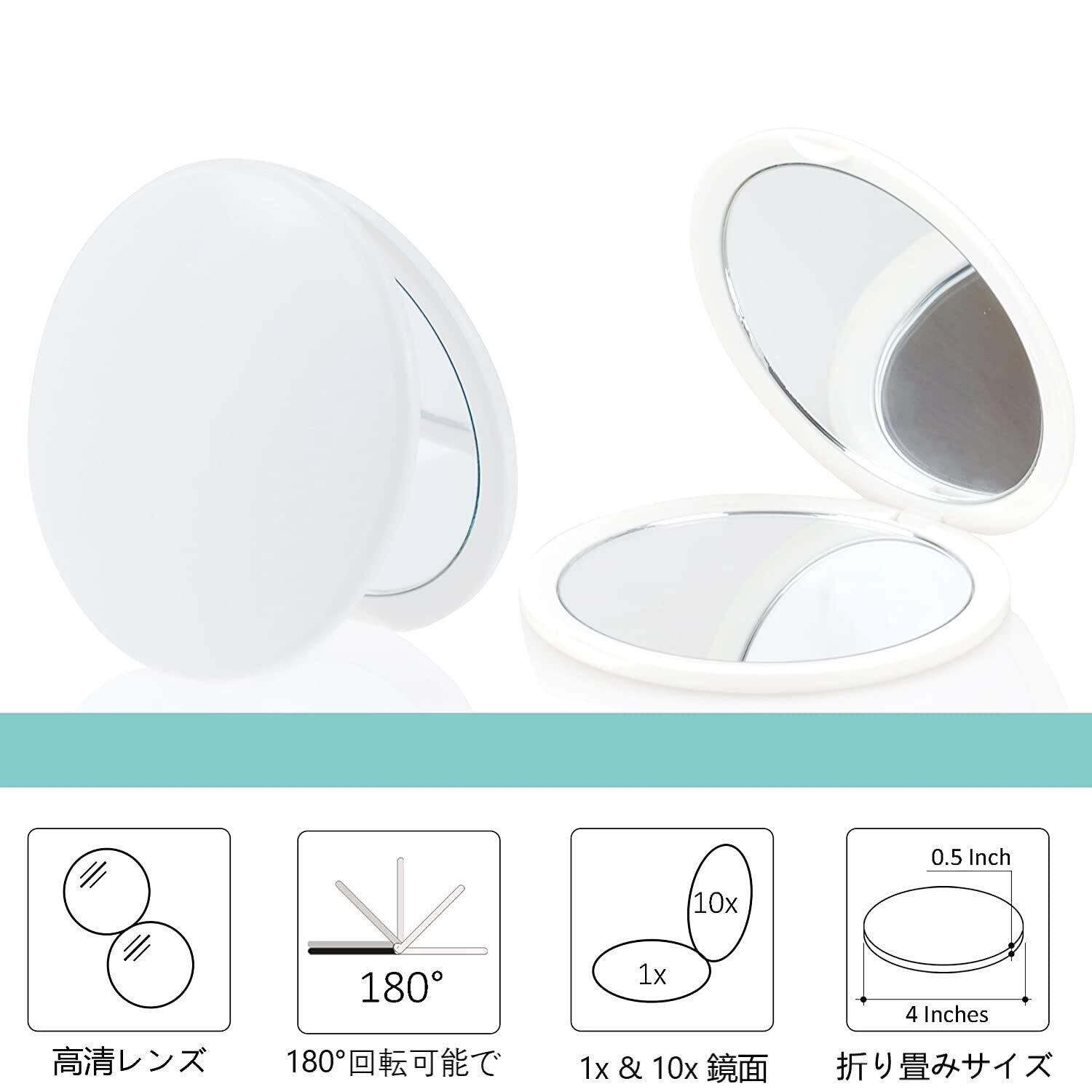 コンパクトミラー 化粧鏡 10倍拡大鏡 折りたたみ鏡 手鏡 両面鏡 角度調整可 超軽量(ホワイト)