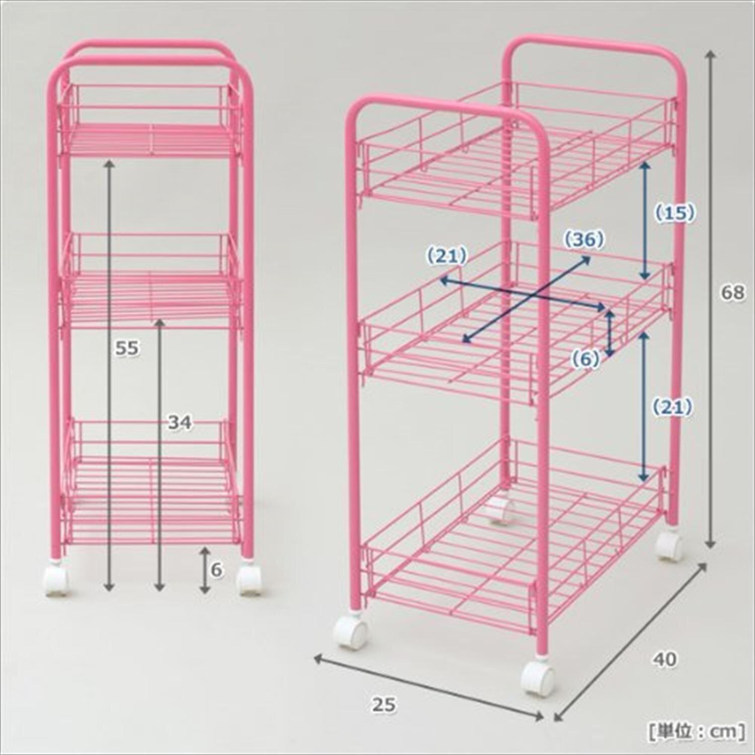 山善(YAMAZEN) スチールワゴン キャスター付き ホワイト RWR-3C(WH) 幅40×奥行25×高さ68cm