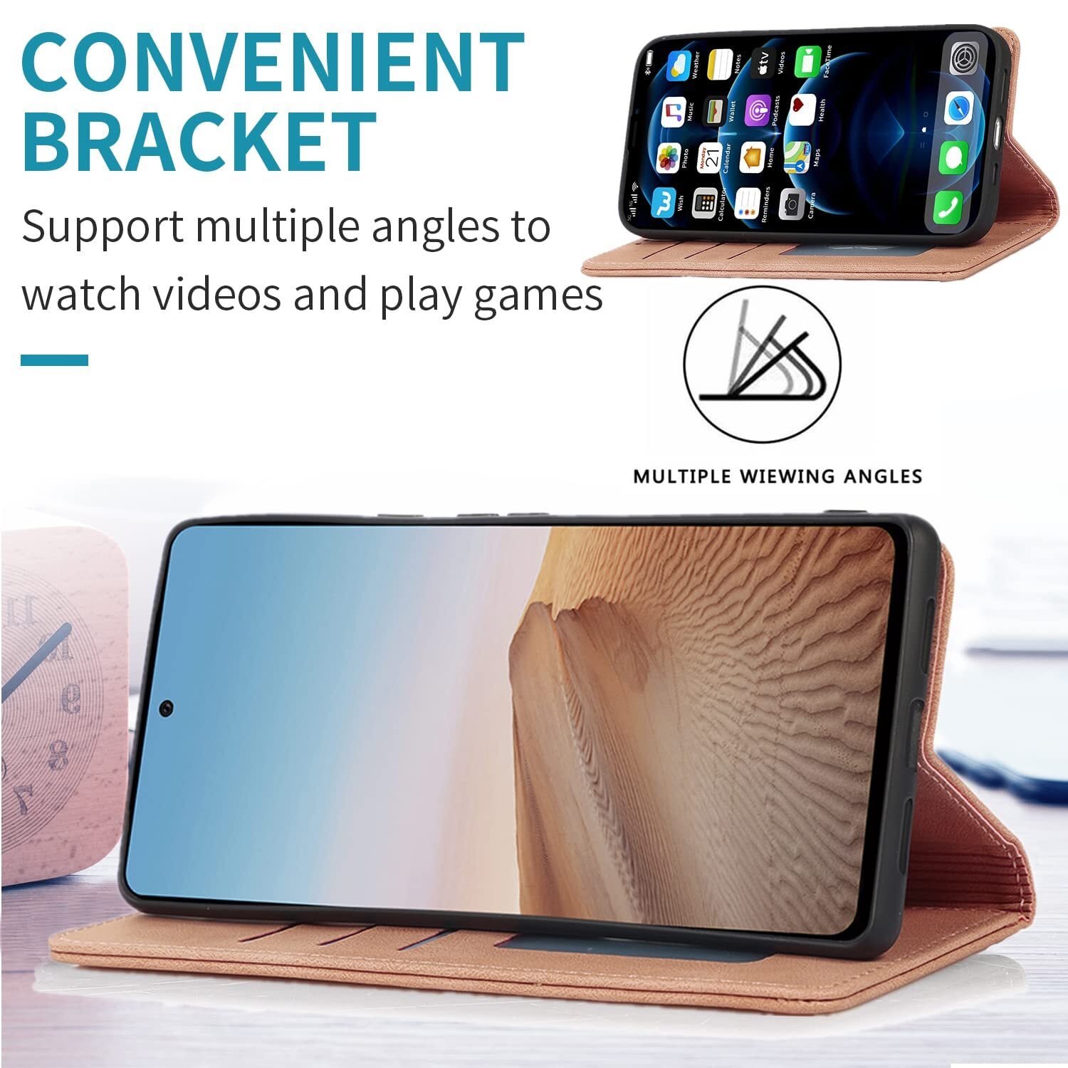 Xiaomi 13T / 13T Pro ケース 手帳型 【ストラップ 一本付】 適用 Xiaomi 13T XIG04 au シャオミ 13T Pro ケース Xiaomi13T スマホケース 13TPro ケース case 【Heofuixt】 滑り止め 合成レザー スタンド ストラップ付き 窓口式 カード入れ マグネット 手帳ケース カードケース カバー 落ち着いた色ケース レトロ ピンク