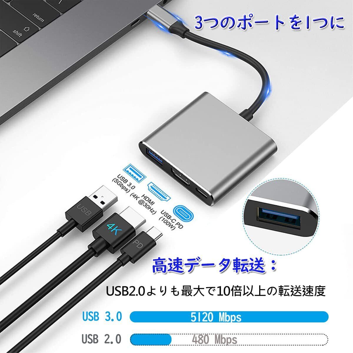 USB Type C HDMI アダプタ 3in1【2025高機能版】 タイプ c hdmi 変換 100W高速PD充電 1080P 60Hz 4K対応 switch テレビ出力 MacBook Pro/Mac Air/Mac mini/iPad Pro (2018-2020),Samsung Galaxy S20 / S10 /Note10/Apple 15シリーズ その他USB-C機器