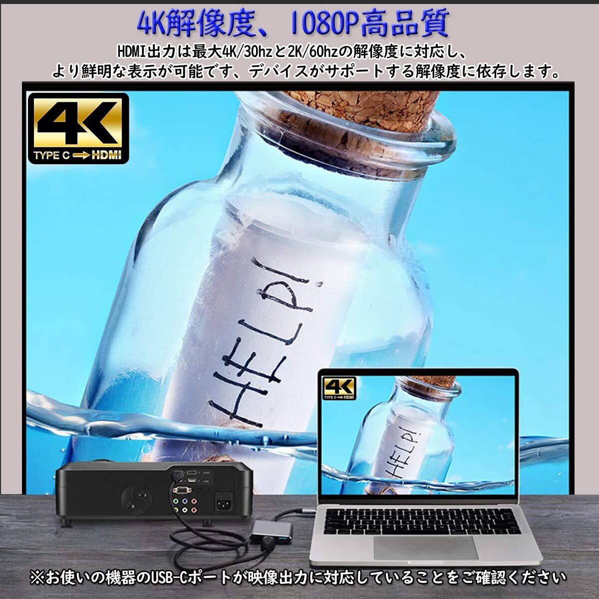 【3-in-1アダプタ】拡張:Type C to usb 3.0データポート+4K @ 30Hz HDMI出力ポート+USB Type C高速PD充電ポート。3つのポートが同時に動作することができます、 USB Cデバイスを簡単に拡張して、毎日の使用を満足させます。