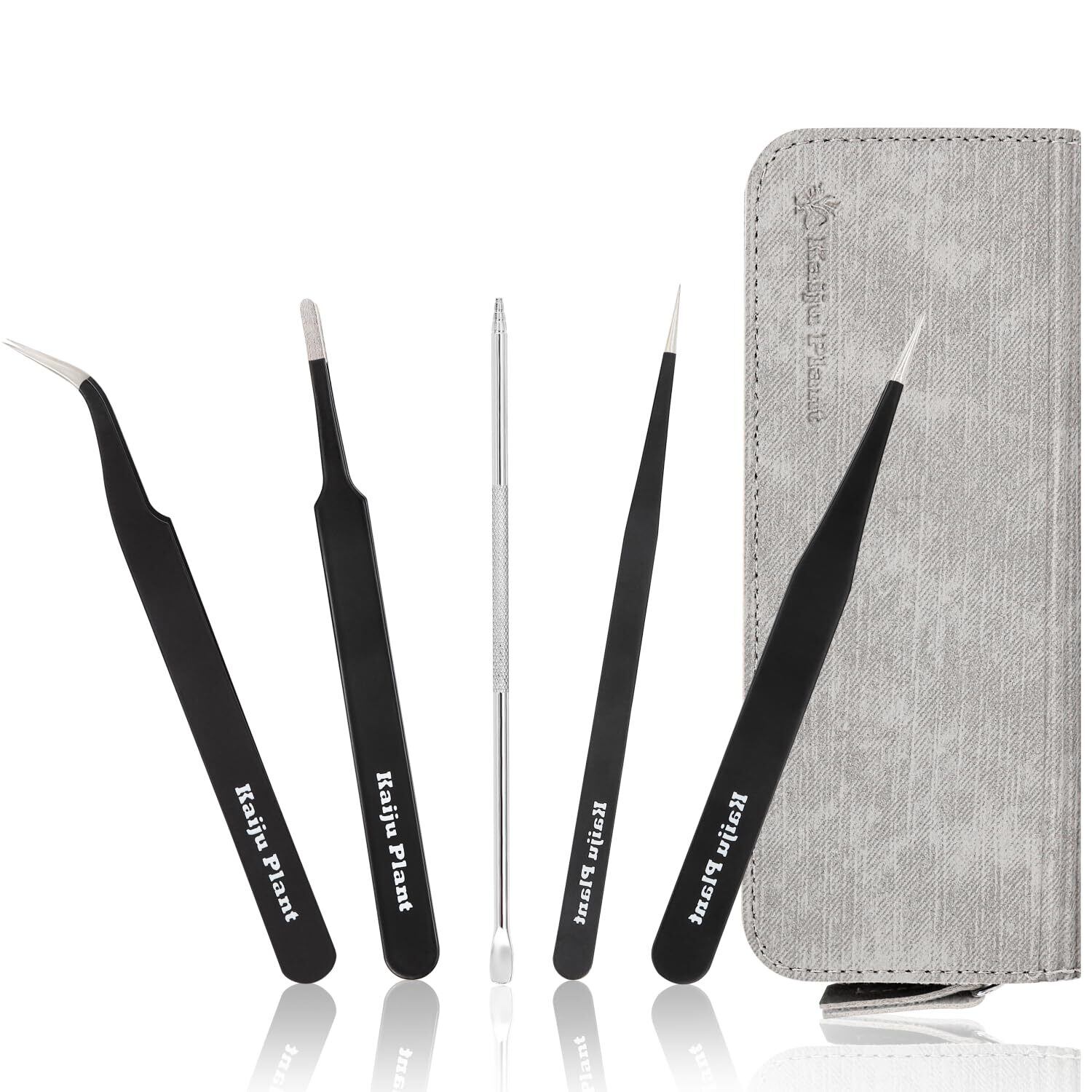 Kaiju Plant ピンセット 4種 + 根かき棒 植替え 美しく仕上げる 多肉 アガベ サボテン 園芸 DIY ポーチ付き ステンレス