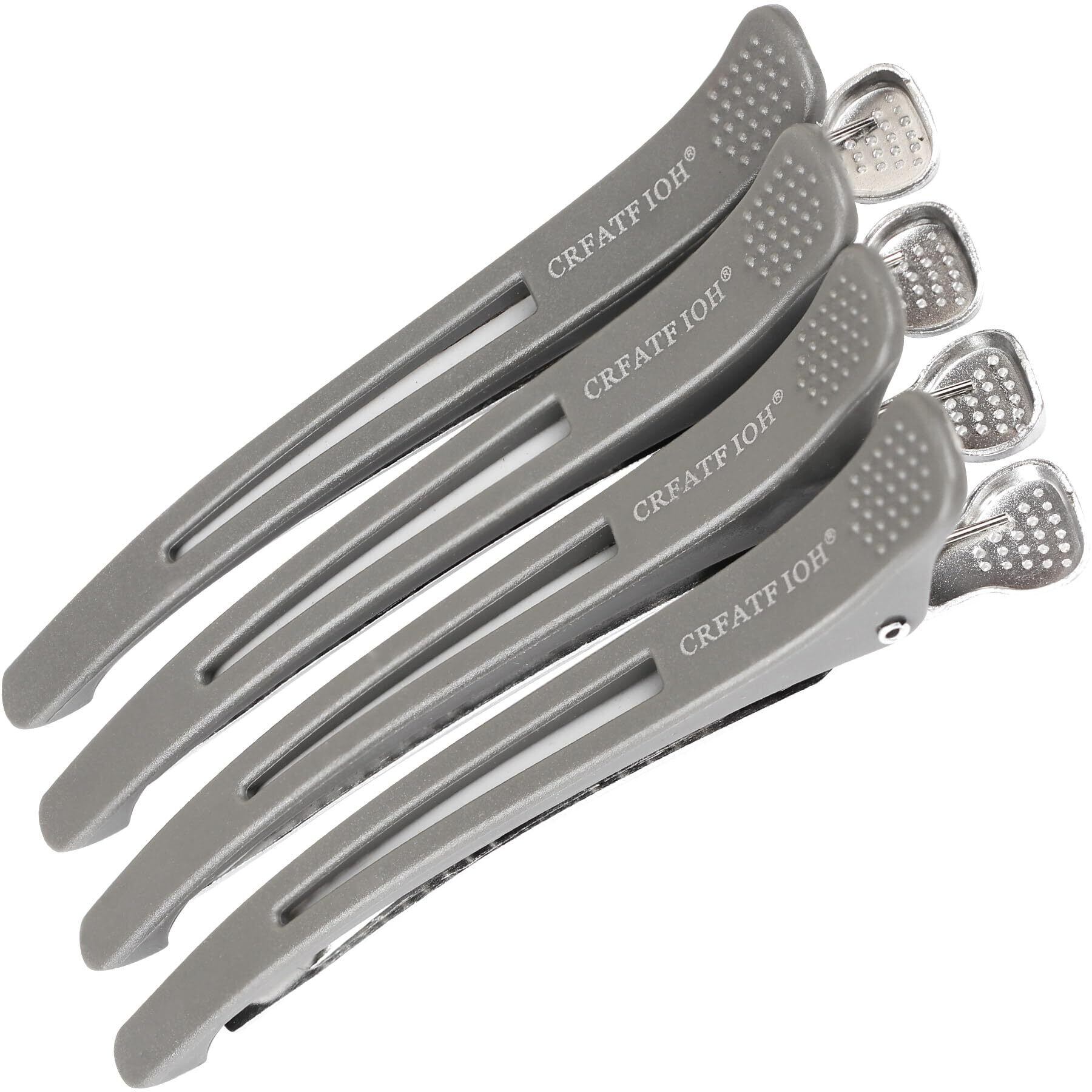 (EI Sonador)ダッカール ヘアクリップ 跡がつかない 滑り止めゴム付き 美容師 業務用 プロ用 11.5cm Lサイズ (灰色、4個入り)