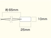1袋:500枚 サイズ:10×25mm 紙:アイボリー#350(厚さ/0.45mm・色/白) 穴:直径2.0mm 糸:白綿糸(結び下約65mm)