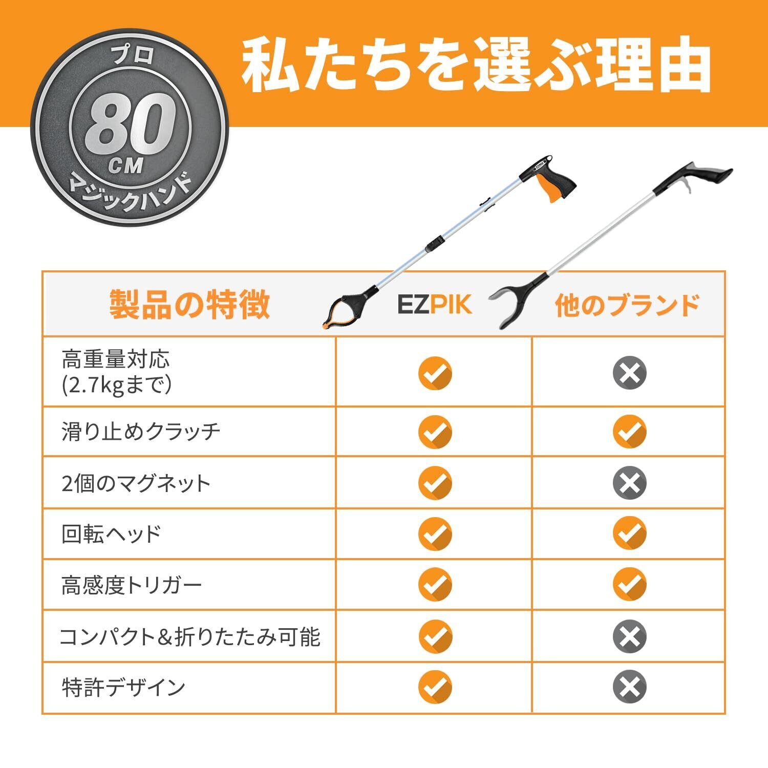 EZPIK 80cm マジックハンド マグネット内蔵 ゴミ拾いトング 360度回転可能 折りたたみ式 伸縮 つかみ棒 お助けハンド らくらくハンド マジックリーチャー 万能ロングハンド アルミ 滑り止め 軽量 強力 ロング 長い ゴムグリッパー付き [80cm、1個パック、シルバー] | yankees