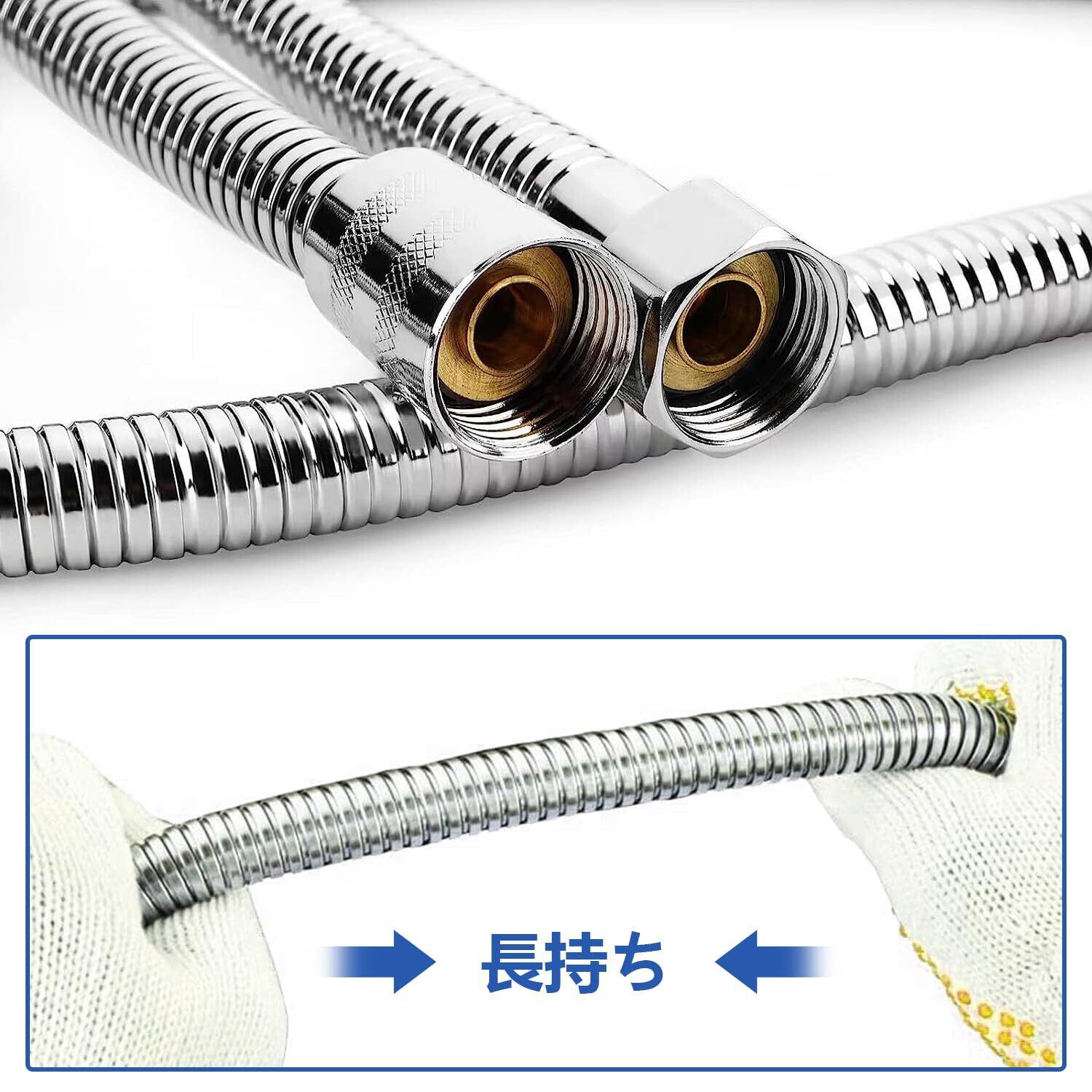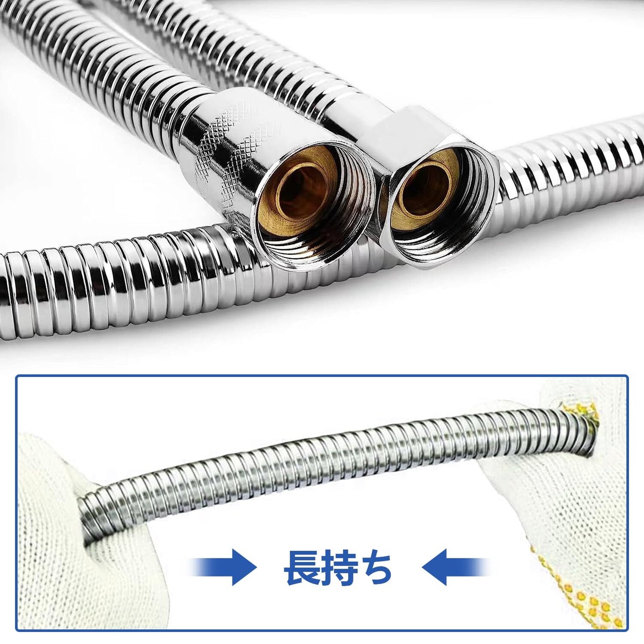 "軽量でフレキシブルなこのシャワーホースは、高水圧のシャワーに対応し、軽くて安全に使用できます。