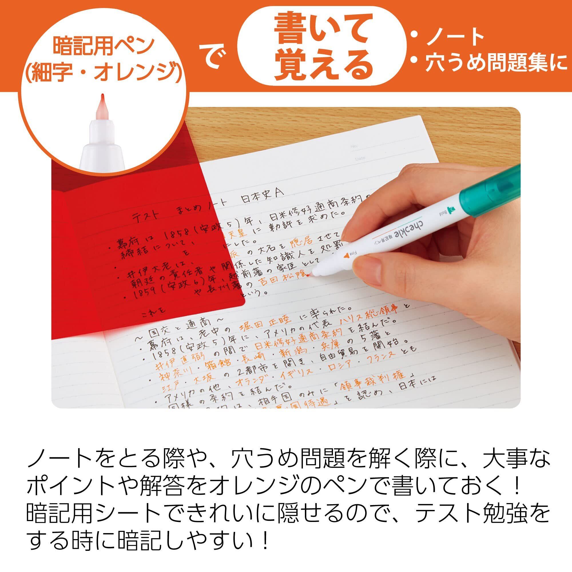 【ペン仕様】暗記用ペン:中字角芯・緑/細字・オレンジ、暗記用消しペン:中字角芯・透明(消去インク)