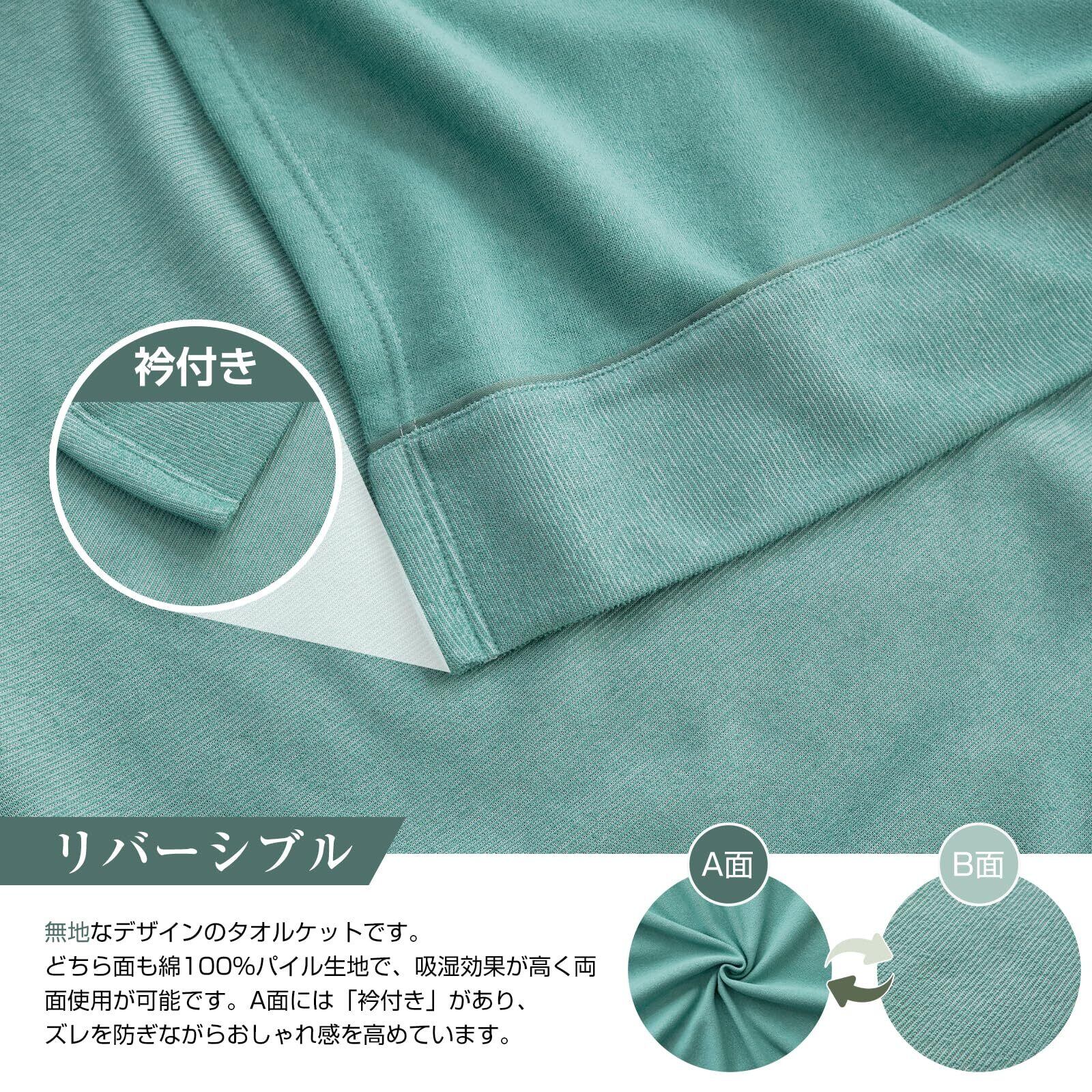 【抜群の吸湿通気性・いつもサラッと快適】両面が使えるやさしい肌触りのタオルケットです。パイルは綿100%で、吸水性が良いので寝汗や湿気を吸ってさらさらに保ちます。なめらかでしっかりしたボリュームと通気性があります。シンプルなスタイルで、和室にも洋室にもぴったりです。洗濯をするたびに、ふっくらとやわらかな風合いが増していきます。(二層のタオルを貼り合わせる必要があるため、特殊加工を施されて仕上がりは少し硬いかもしれませんが、1回洗濯するとふんわり感が戻ってきます。)
