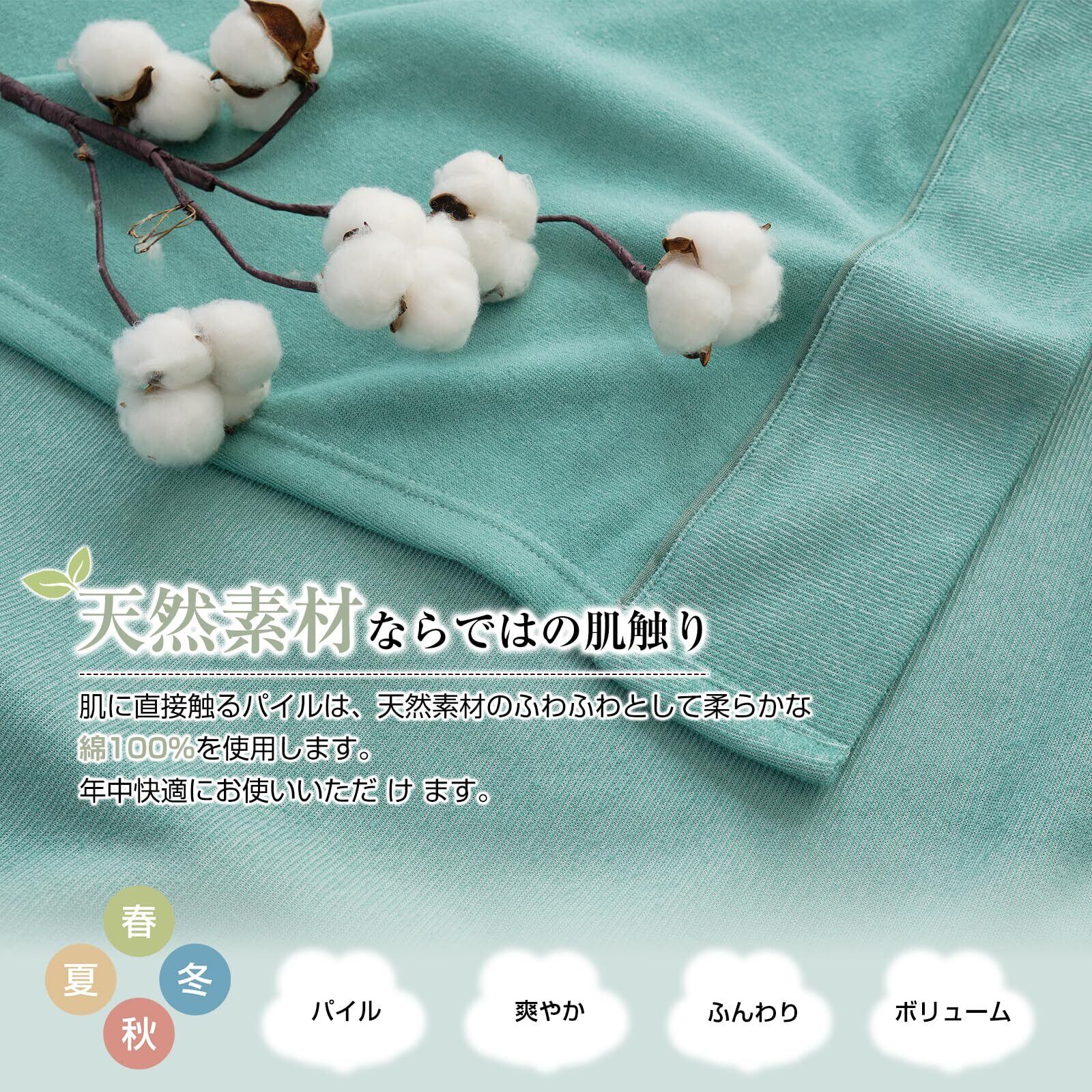 【オールシーズン・様々な用途】肌掛けのコットン素材なので、一年中お使いいただけます。汗ばむ季節は吸水性があるのでサラッと快適で、冷房の効いた部屋での毛布としてもお使いいただけます。肌寒い季節はパイルが程よく空気を含んであたたかく、毛布の代わりに布団のインナーとしても使えます。また、シーツとしても適しています。 ホームだけでなく、温泉・旅行・お花見などいろいろなシーンで大活躍します。自分が使うだけではなく、同僚、上司、お客様へのお礼、友達祝い、親孝行、祝日のギフトにも適しています。