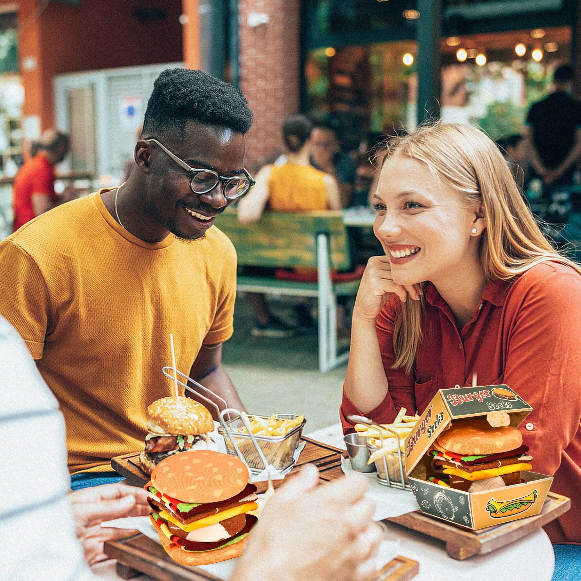 [AGRIMONY] ハンバーガーボックス 靴下 メンズ レディース 男の子 - おもしろ プレゼント男性 女性 父の日クリスマス 誕生日 人気 ギフト おかしお洒落 かわいい コットン おしゃれ クルーソックス バレンタイン ギフト