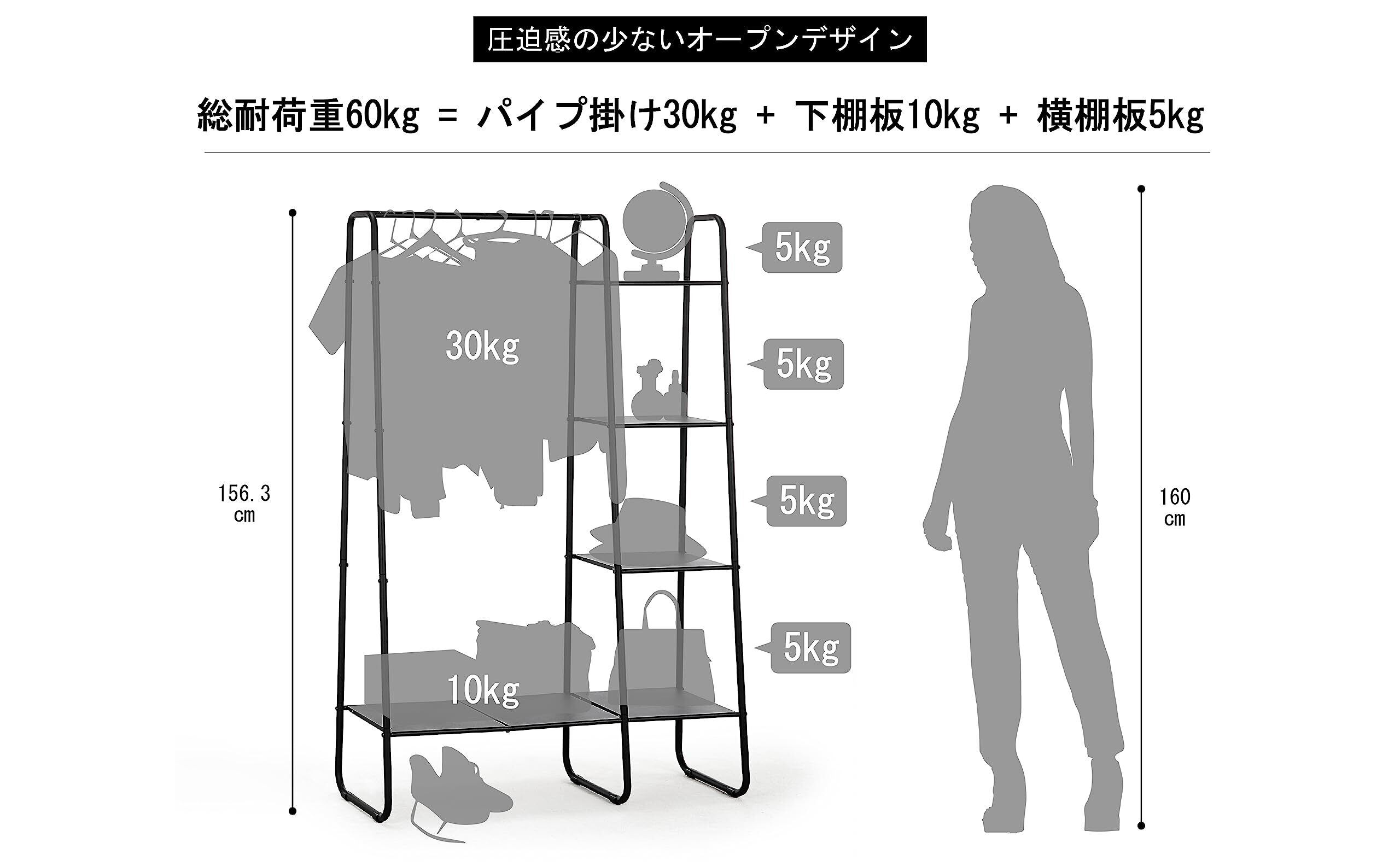 【耐荷重】パイプ30kg/棚板(大) 10kg/棚板(小) 5kg/ 全体:60kg