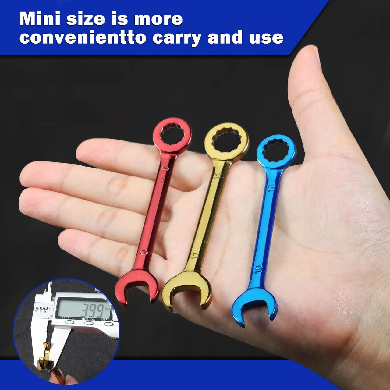 材質:ミニレンチは高品質の炭素鋼で作られており、強くて耐久性があります。レンチの表面に着色されたメッキは、より耐食性があり、その明るい色は、使用時に異なるサイズをすばやく区別することを容易にします。