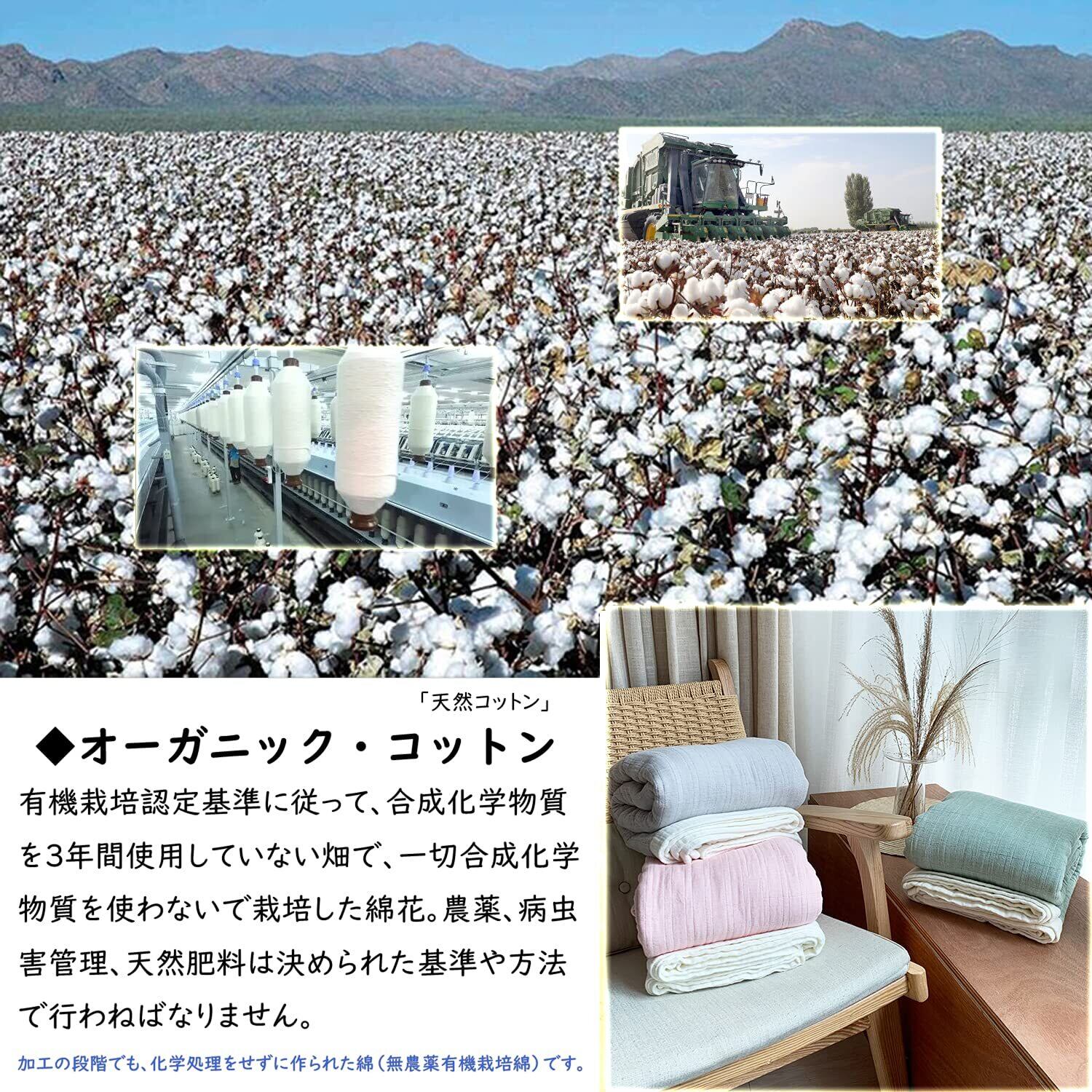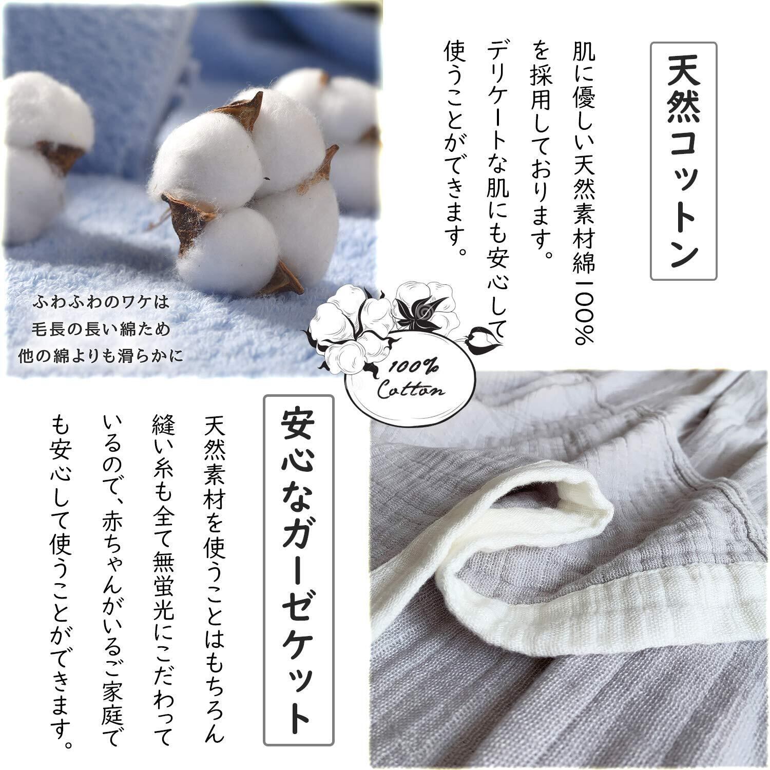 【天然コットン100%】Vanxingのガーゼケットは、綿花にとことんこだわっています。肌に優しい天然素材綿100%を採用しております。デリケートな肌にも安心して使うことができます。静電気も大変起きづらいのも人気です。