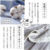 【安心なガーゼケット】天然素材を使うことはもちろん、縫い糸も全て無蛍光にこだわっているので、赤ちゃんがいるご家庭でも安心して使うことができます。寝苦しい夏の夜や肌寒くなってきた秋でも一年中、快適な眠りを体感できます。