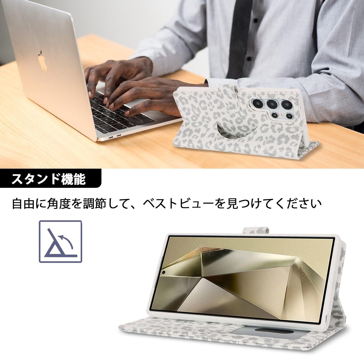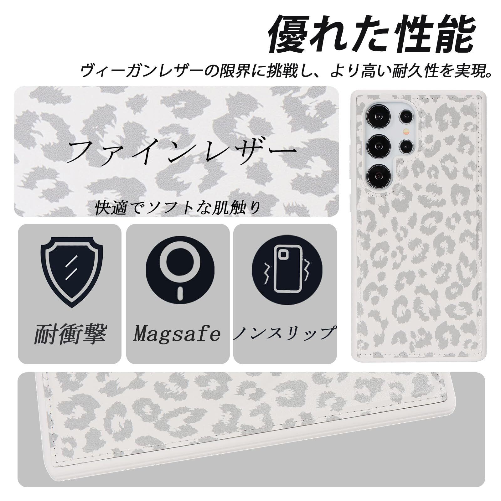 Havaya Galaxy S24 ultra ケース Magsafe 対応 ギャラクシーs24 ultra ケース 手帳型 マグセーフ SCG26 スマホケース SC-52E au S24ウルトラ SC52E カード収納 レザー 【分離式2in1】 ワイヤレス充電対応-ホワイト (ヒョウ柄)